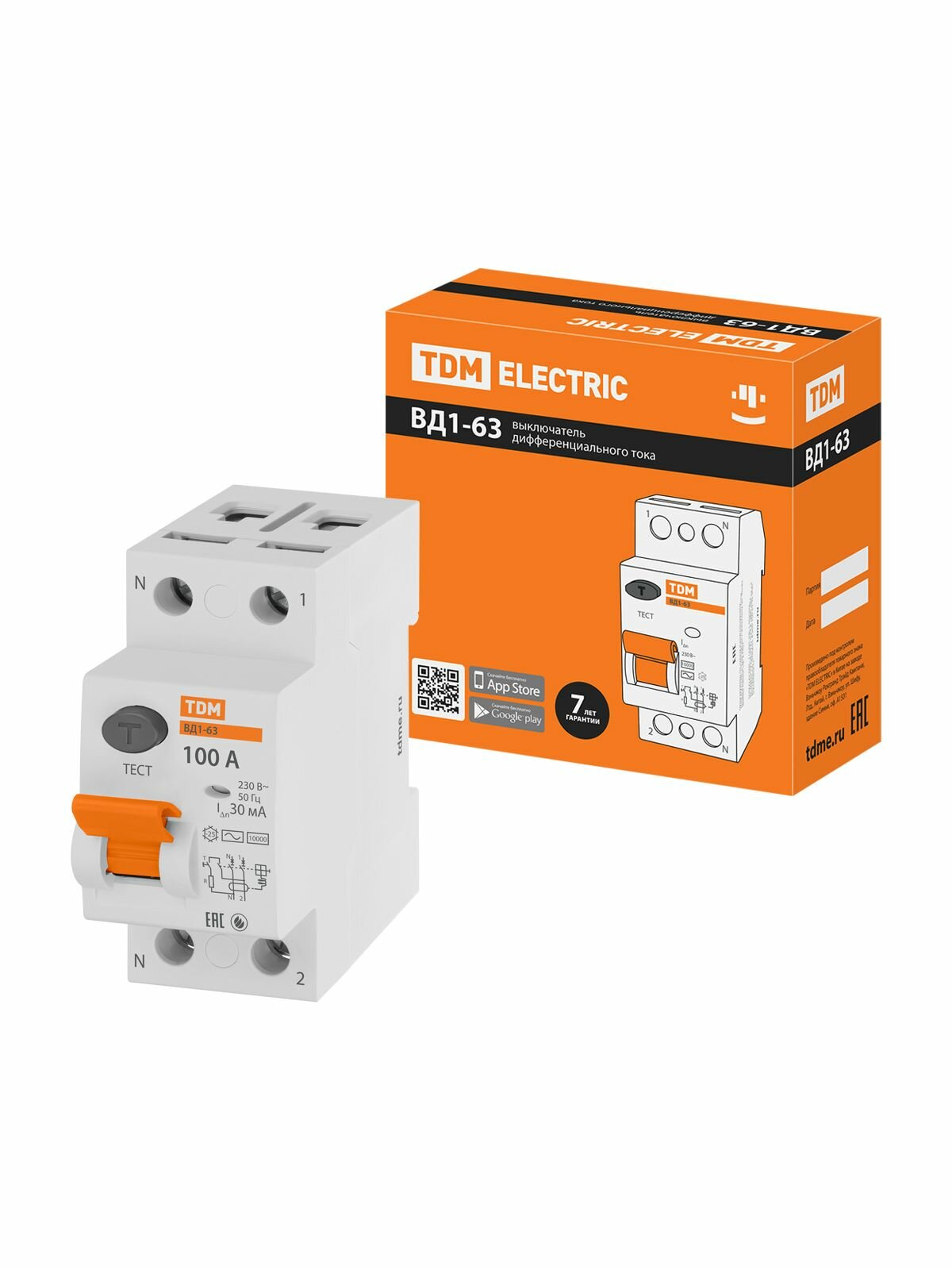 Устройство защитного отключения ВД1-63 2Р 100А 100мА, TDM SQ0203-0023 (1 шт.)
