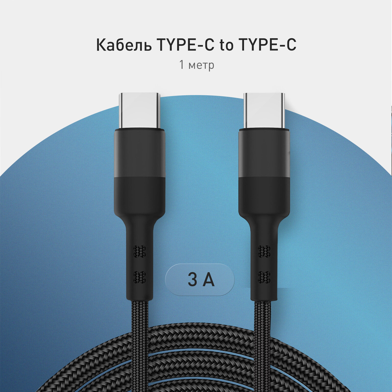 Зарядный кабель 1 метр type c to type-c быстрая зарядка 65Вт в нейлоновой оплётке, подходит для Apple iPhone 15, Macbook, iPad и других, бренд Rosco, чёрный