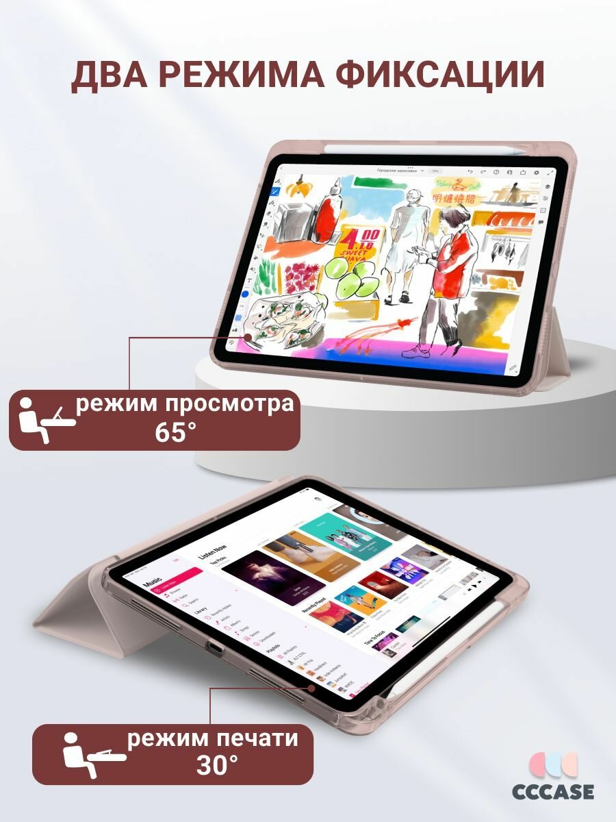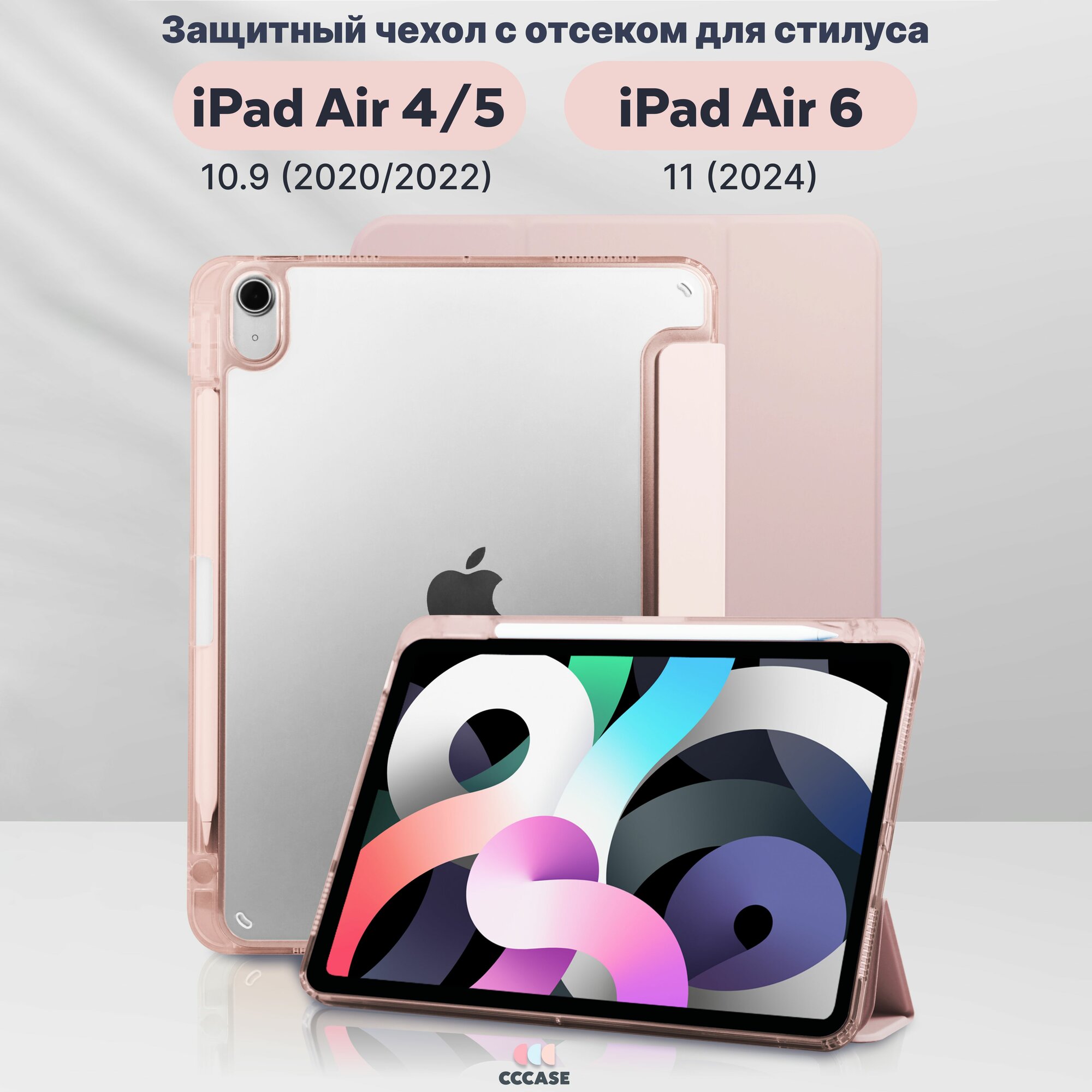 СохранитьCCCASE / Чехол на iPad Air 6 11(2024); iPad Air 5 10.9 (2022); iPad Air 4 10.9 (2020) - A2316 A2324 A2325 A2072 A2588 A2589 A2591 A2902 A2903 A2904, с отделением для стилуса и прозрачной стенкой, цвет: пастельно-розовый интересное: