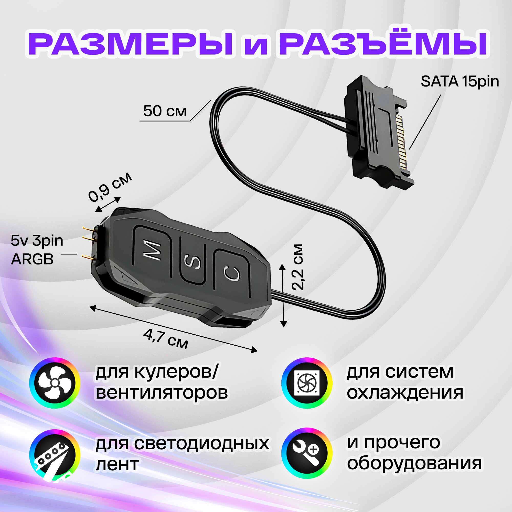 Контроллер ARGB для ПК. COOLMOON контроллер для вентиляторов с подсветкой 5v 3pin ARGB, питание SATA, черный