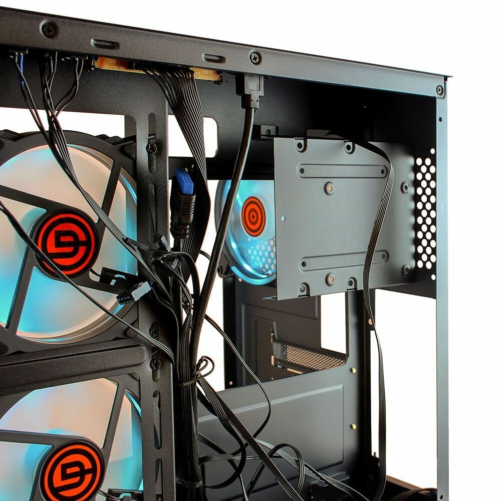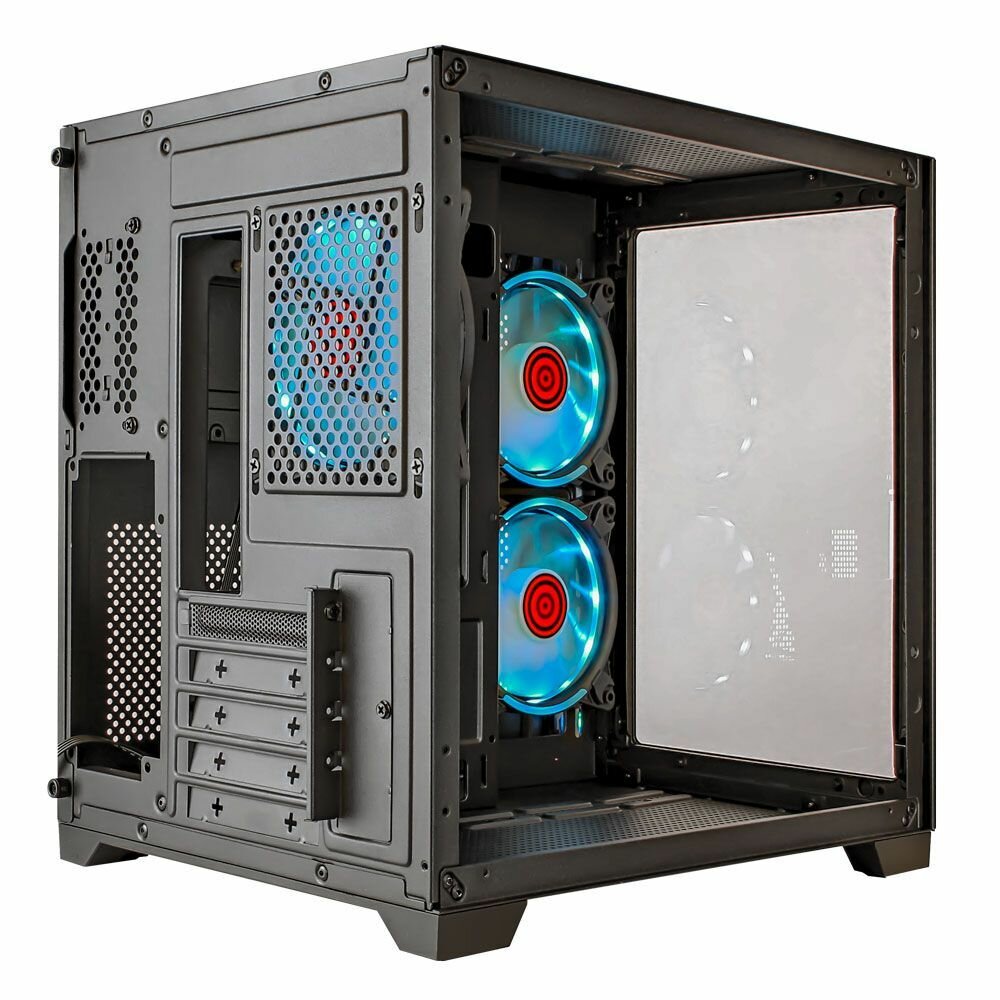Корпус Ginzzu V450 mATX кубик, закаленное стекло, RGB подсветка, система охлаждения