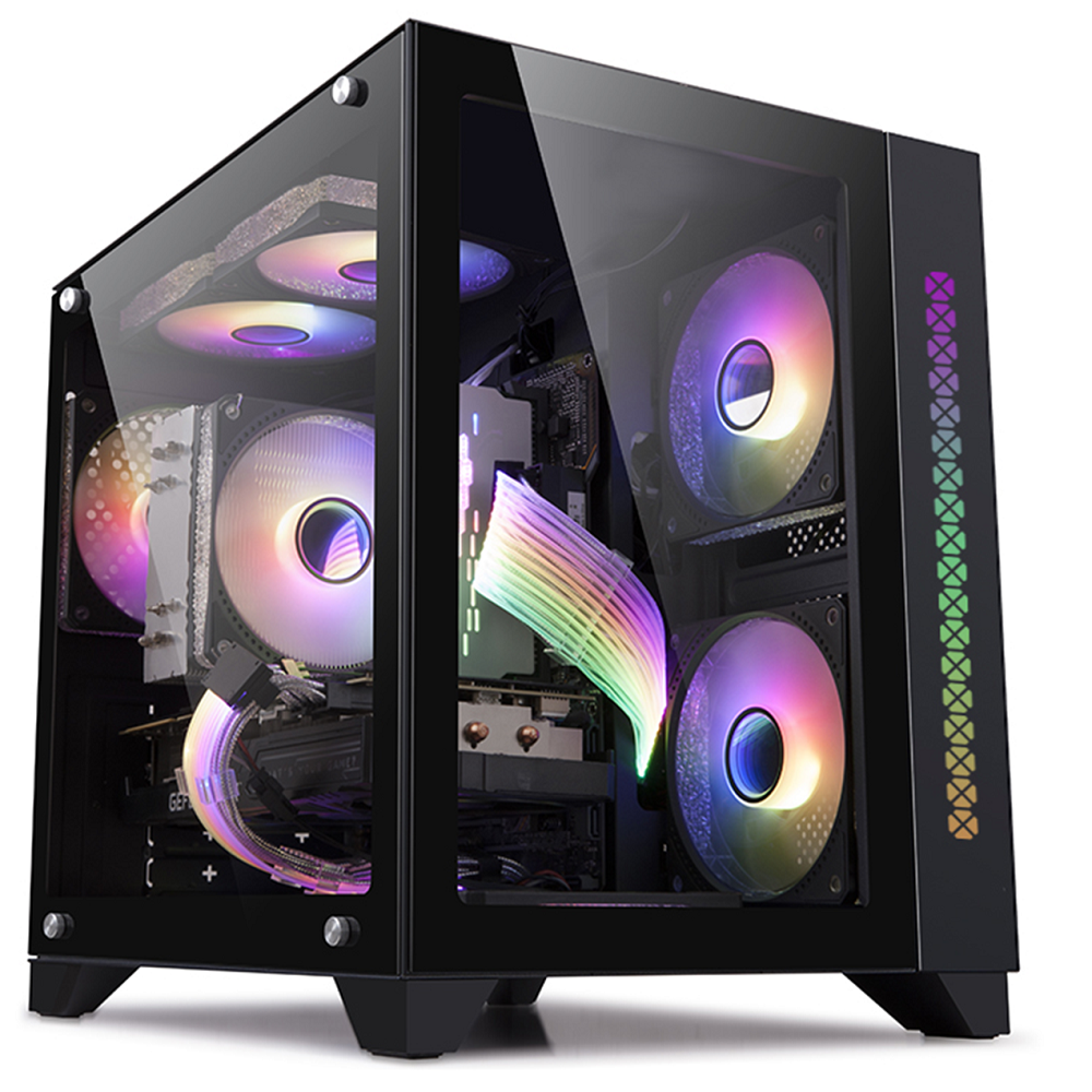 Корпус Ginzzu V350 mATX кубик, закаленное стекло, RGB подсветка, система охлаждения