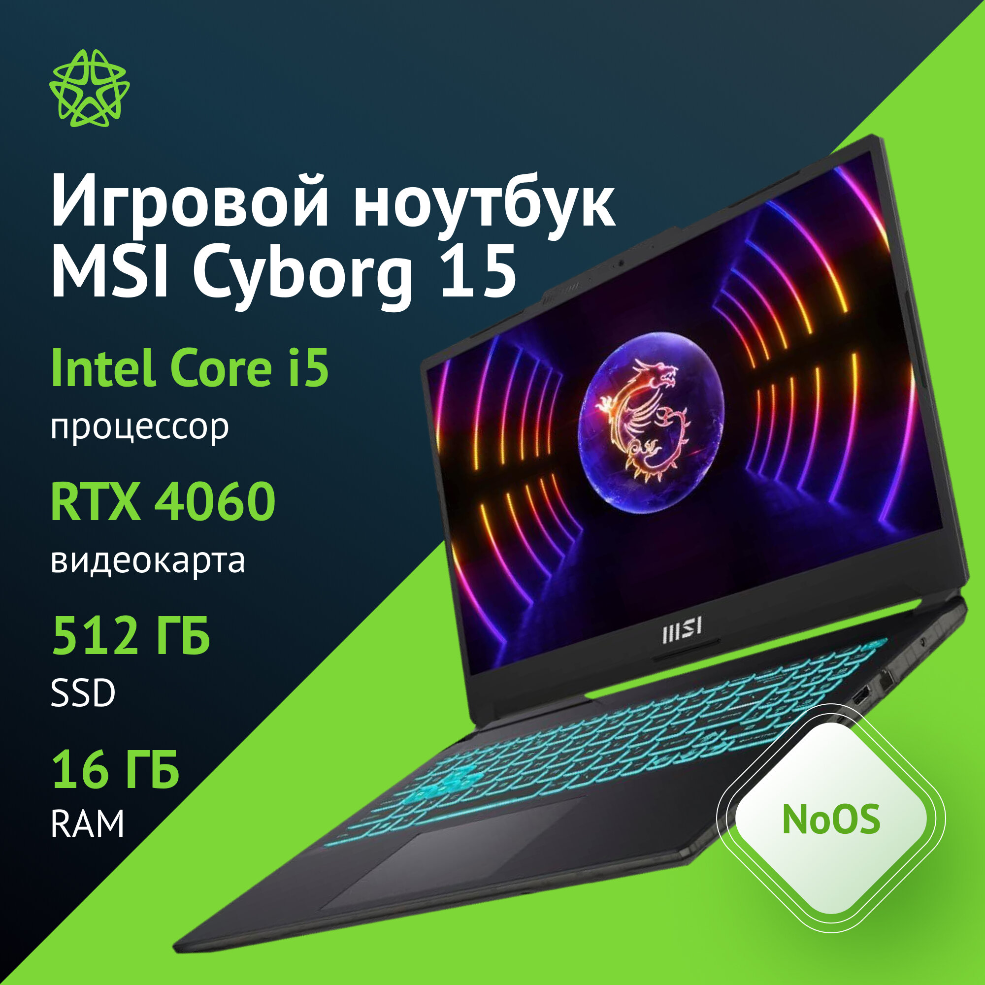 Купить Ноутбук игровой MSI Cyborg 15 A13VF-1223XRU, 15.6", IPS, Intel Core i5 13420H, DDR5 16ГБ, SSD 512ГБ, NVIDIA GeForce RTX 4060 для ноутбуков 8ГБ, черный (9s7-15k111-1223)