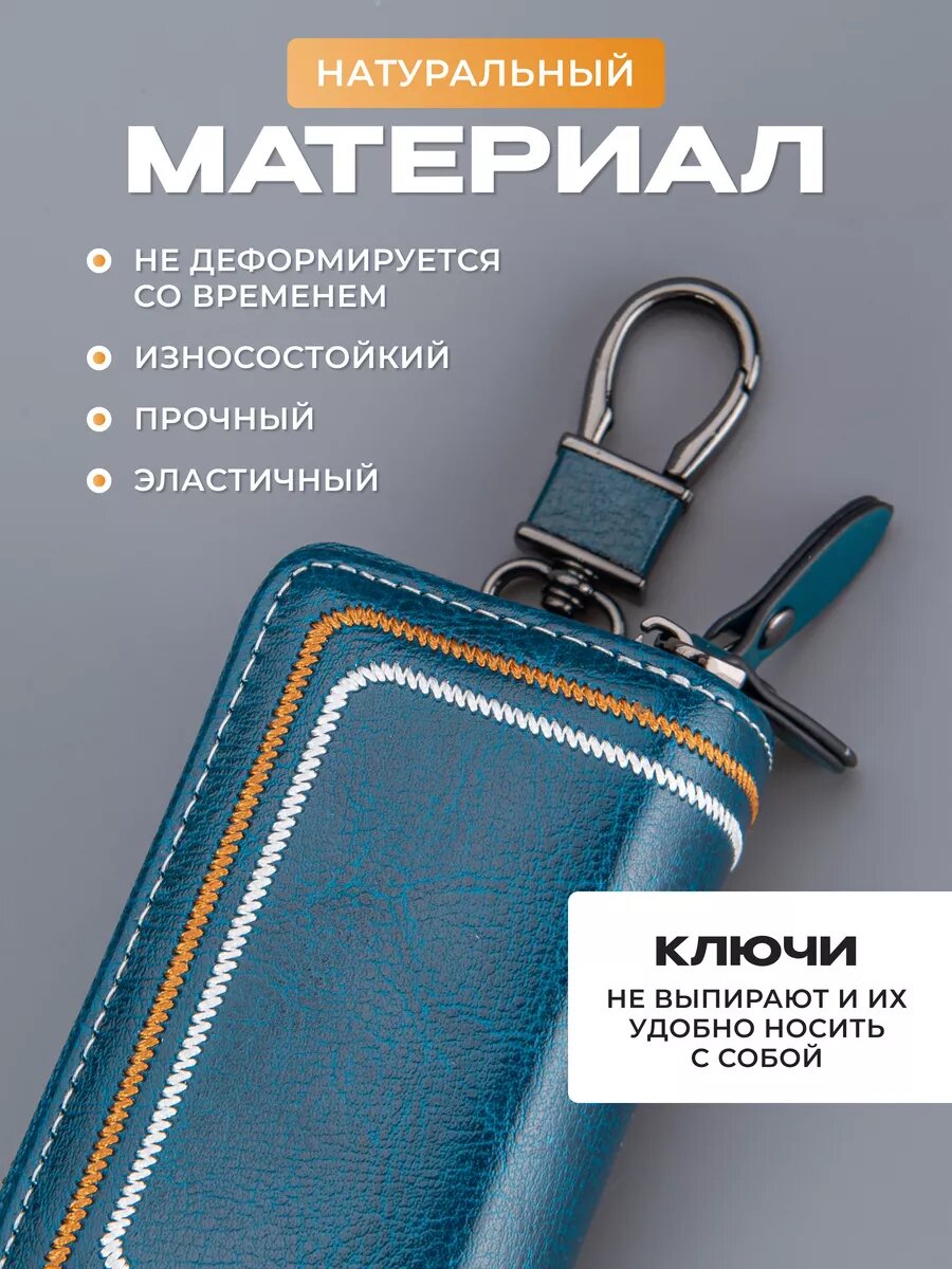 Купить Ключница из натуральной кожи, 2 отделения на молнии, карабин, синий