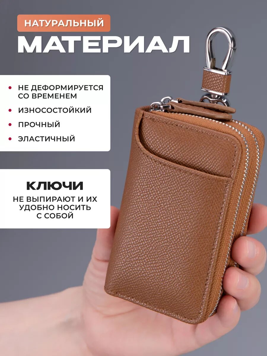 Ключница кожаная карманная на молнии для авто и сумки