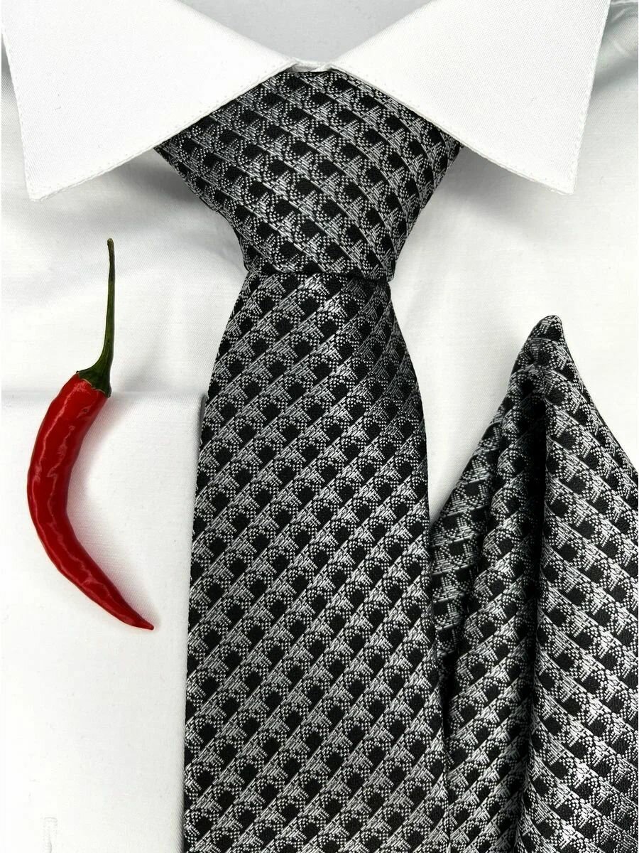 СохранитьГалстук широкий серый и платок в карман пиджака интересное: