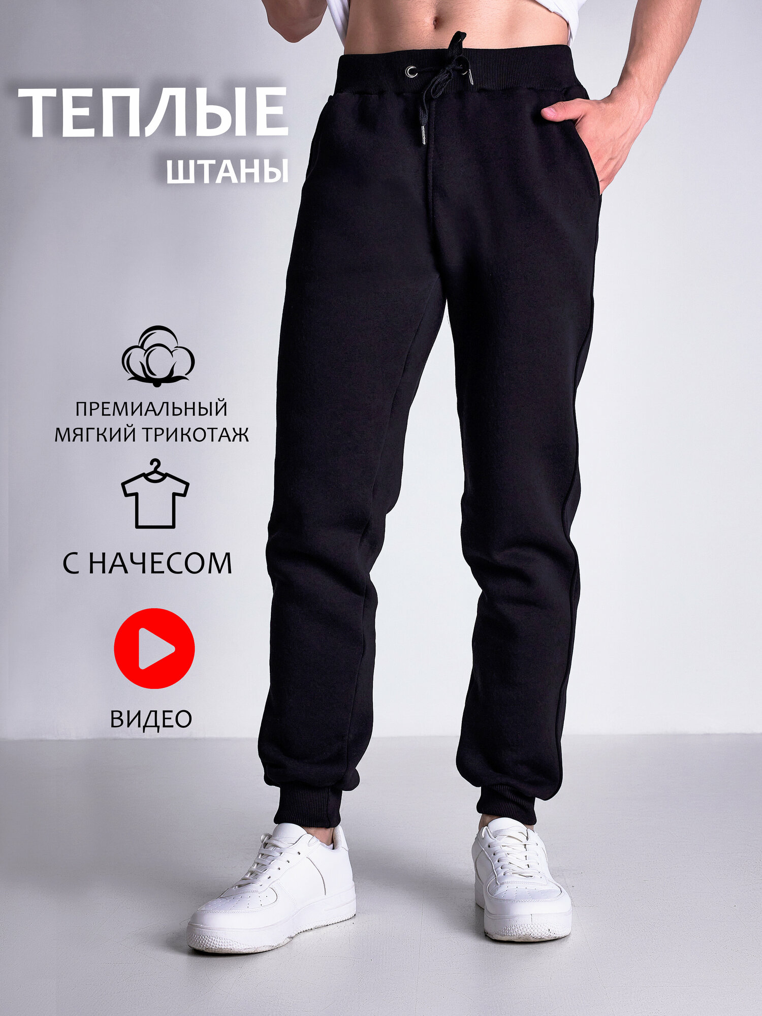 Брюки с начесом TELAR / черные со шнурком / утепленные / зимние / размер XL50