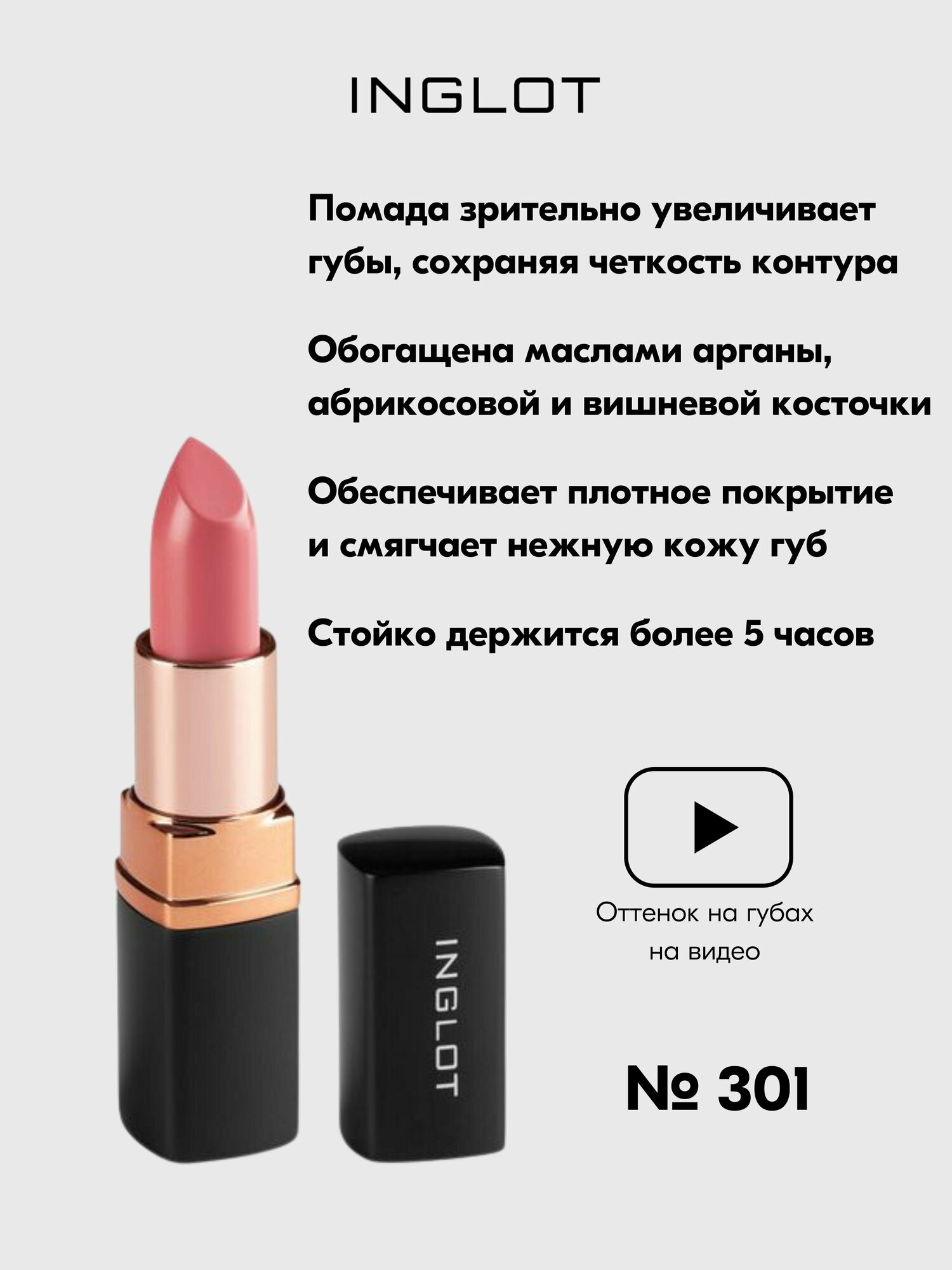 СохранитьПомада сатиновая стойкая для губ INGLOT полуматовый финиш, кремовая текстура №301S интересное: