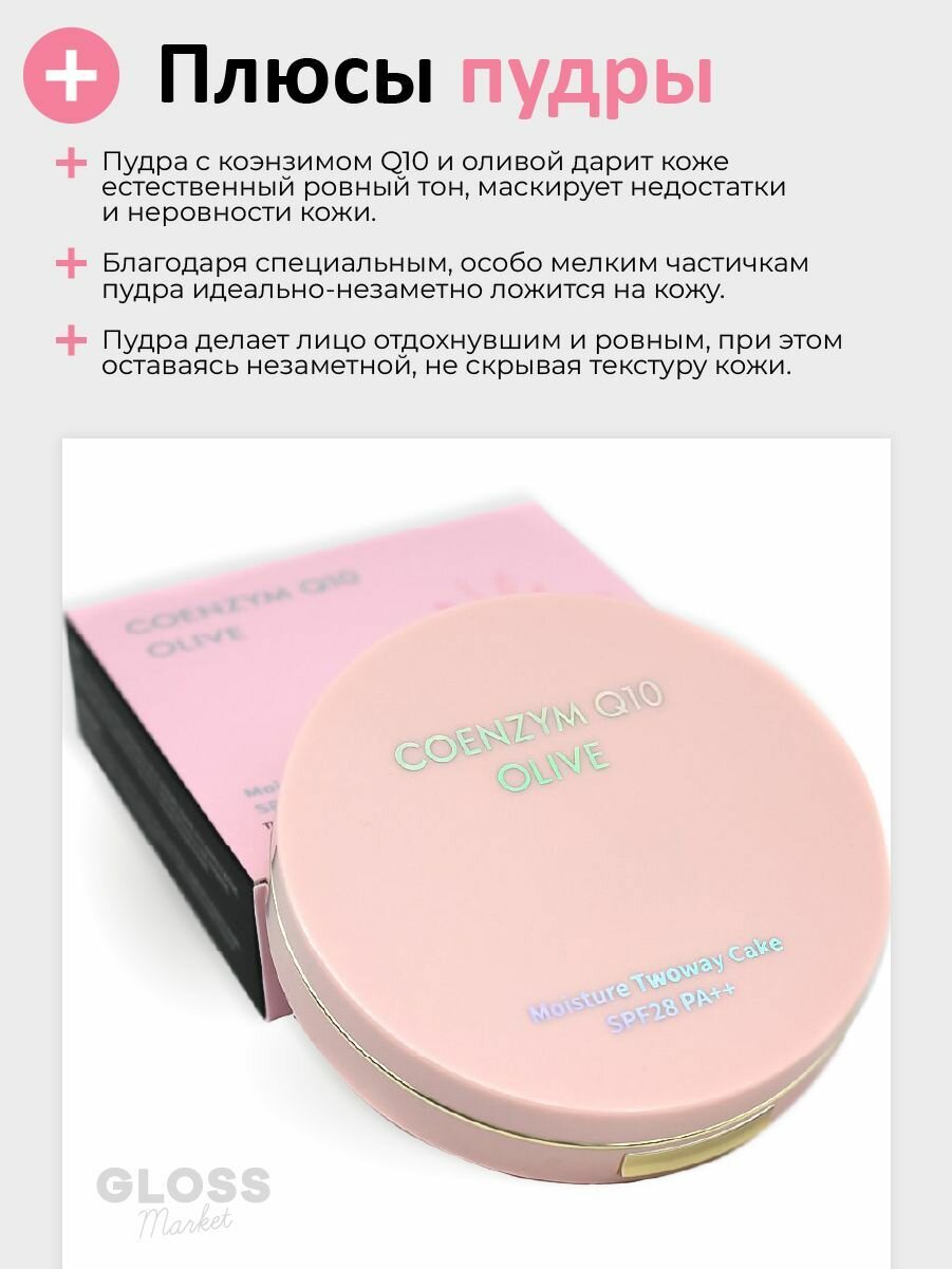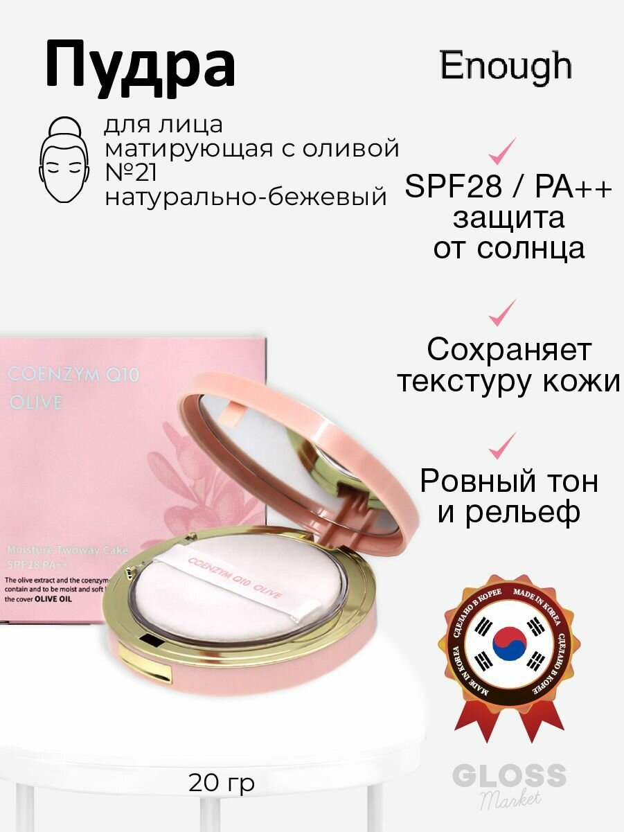 Купить Матирующая пудра для лица Enough Coenzyme Q10 Olive Moisture Twin Cake SPF28 PA++ (21 тон) (20 гр)
