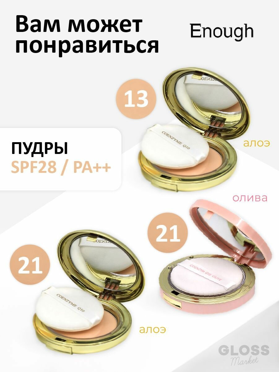 СохранитьМатирующая пудра для лица Enough Coenzyme Q10 Olive Moisture Twin Cake SPF28 PA++ (13 тон) (20 гр) интересное:
