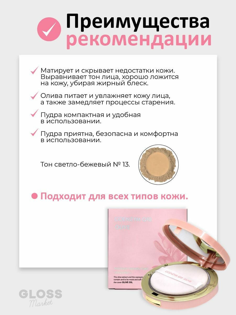 Купить Матирующая пудра для лица Enough Coenzyme Q10 Olive Moisture Twin Cake SPF28 PA++ (13 тон) (20 гр)