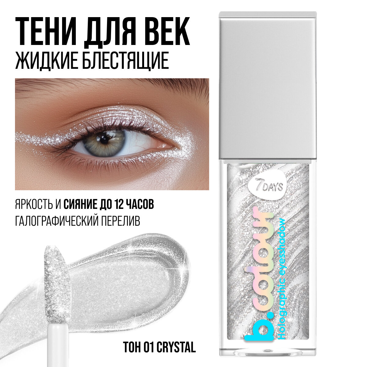 7DAYS Тени для век блестящие жидкие и мерцающие B.COLOUR 01 CRYSTAL