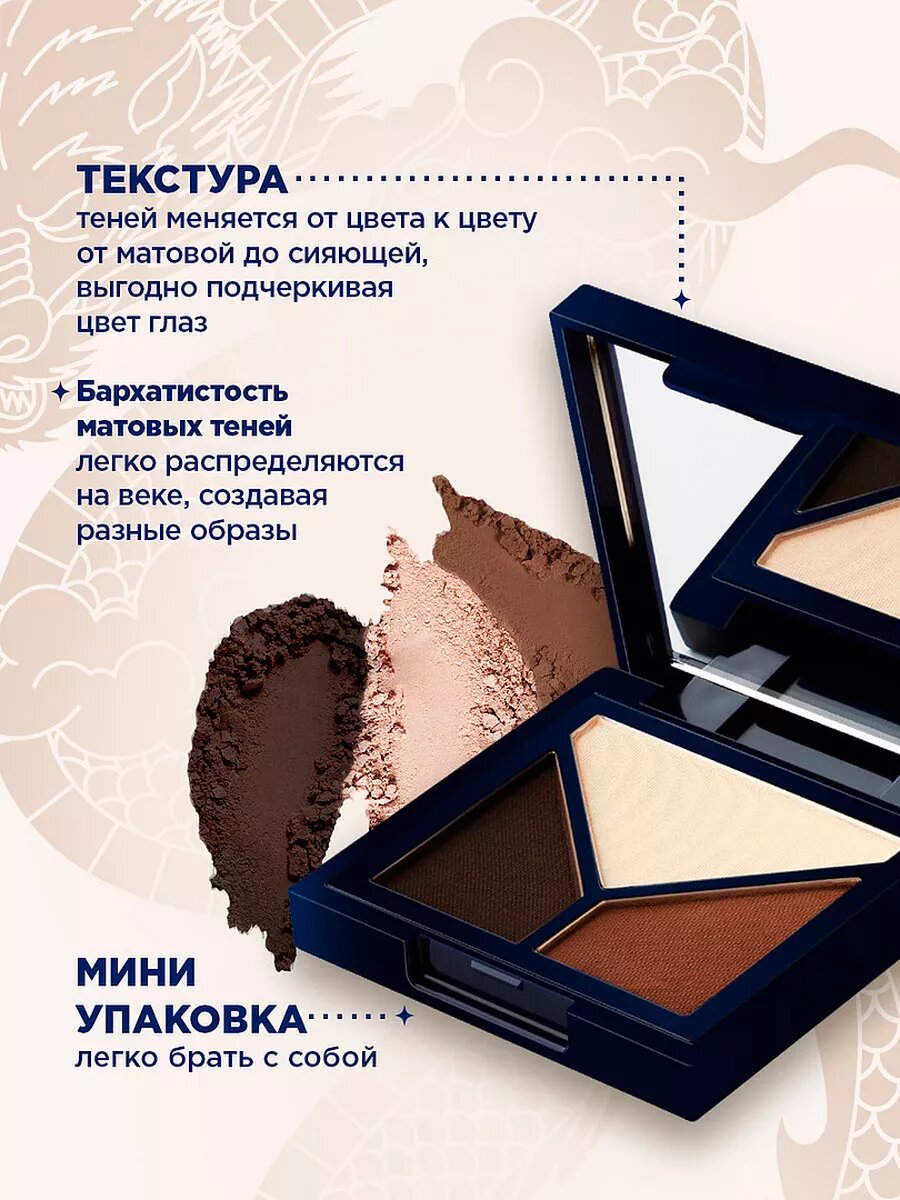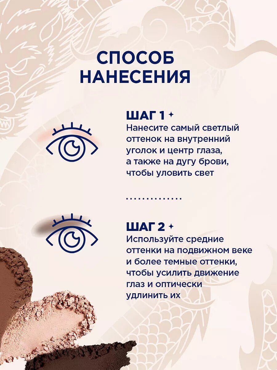 | Способ применения | Нанесите тени на веки и растушуйте границы. |