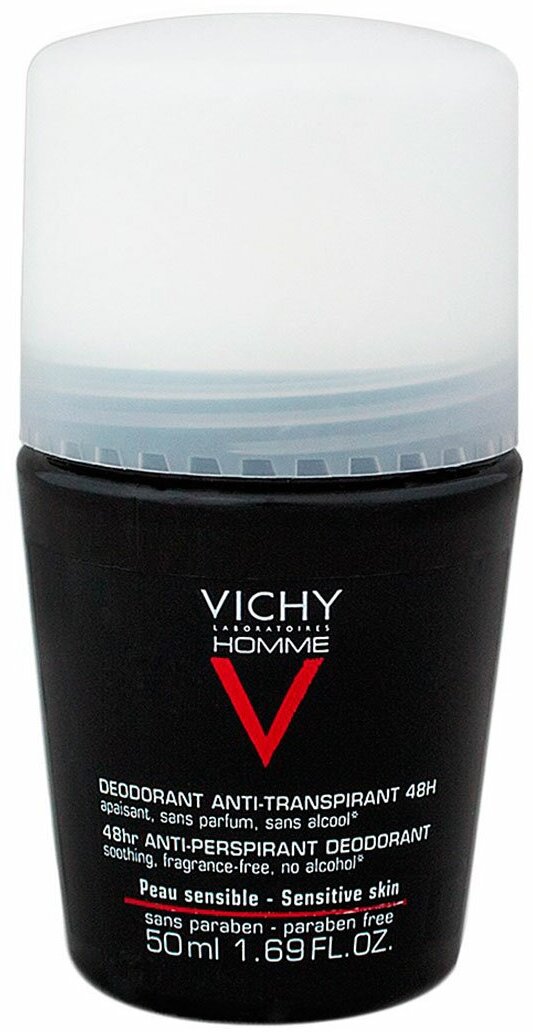 Дезодорант-антиперспирант шариковый Vichy Homme для чувствительной кожи 48 часов, 50 мл