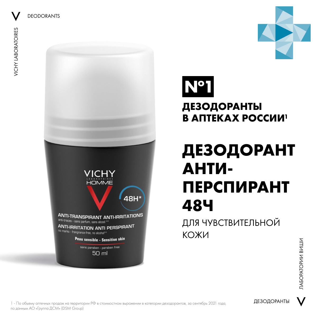 Дезодорант для чувствительной кожи 48 часов Homme Vichy/Виши 50мл интересное: