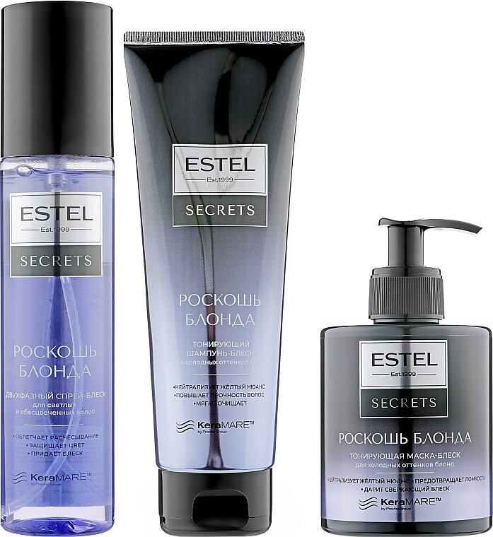 ESTEL SECRETS Набор для волос Роскошь блонда, тонирующий шампунь, маска, спрей