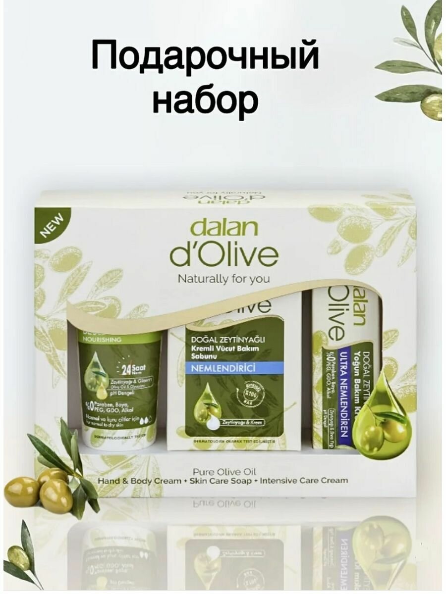 Подарочный набор Dalan D'Olive турецкой косметики 180 гр: увлажняющий крем 60 мл, мыло 100 гр, интенсивный крем 20 мл