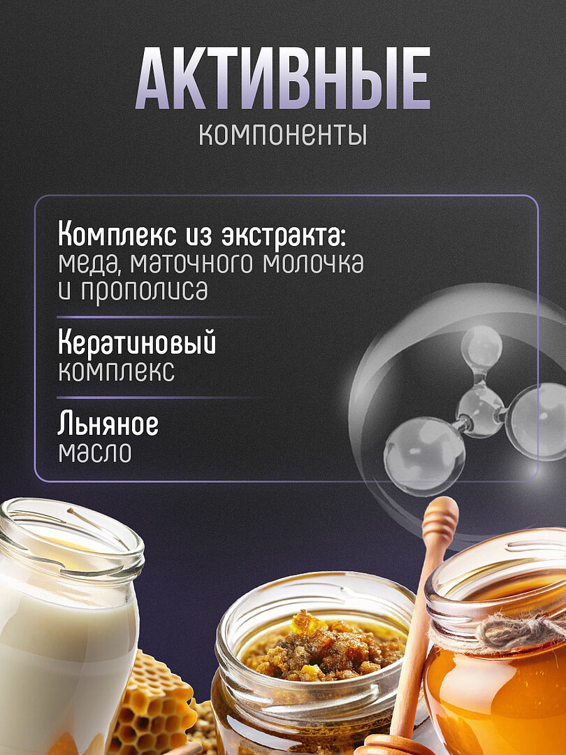 | Состав | Aqua, Cetearyl Alcohol, Propylene Glycol, Bis-Hydroxy/Methoxy Amodimethicone, Cetrimonium Chloride, Glycerin, Cyclopentasiloxane, Glyceryl Stearate, PEG-100 Stearate, Olea Europaea Fruit Oil, Ceteareth-23, Silicone Quaternium-18, Trideceth-6, Trideceth-12, Parfum, Hydroxyethylсellulose, Hydrolyzed Keratin, Linum Usitassimum Seed Oil, Mel Extract, Royal Jelly Extract, Propolis Extract, Benzophenone-4, Disodium EDTA, Brassica Napus Seed Oil, Glyceryl Palmitate/Stearate, BHA, BHT, Propyl Gallate, Citric Acid, Sodium Acetate, Isopropyl Alcohol, Cellulose, Methylchlоroisothiazolinone, Мethylisothiazolinone, Sodium Benzoate, Potassium Sorbate. |