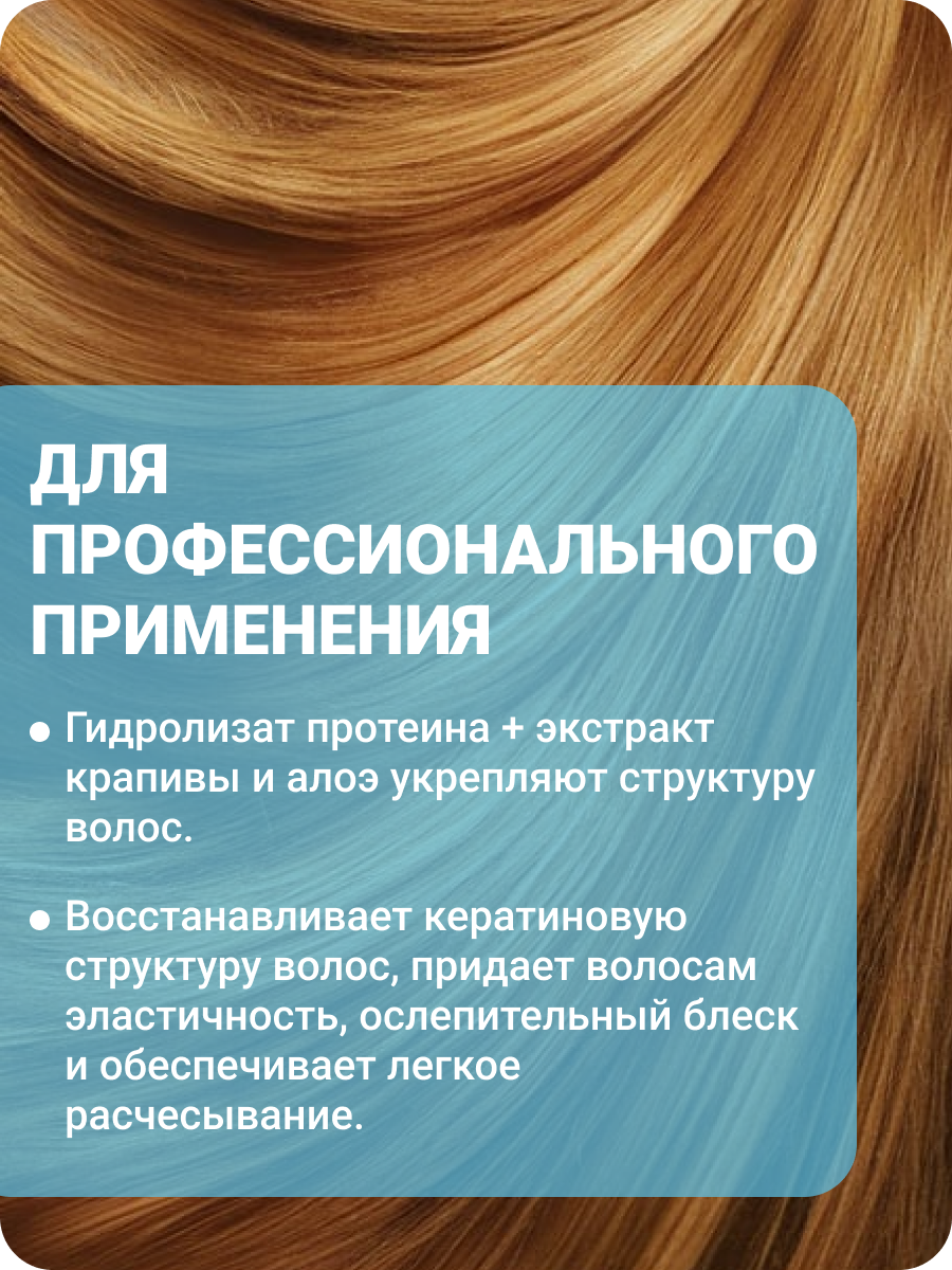 | Эффект | восстановление / облегчение расчесывания / питание / придание блеска / придание эластичности / разглаживание / укрепление |