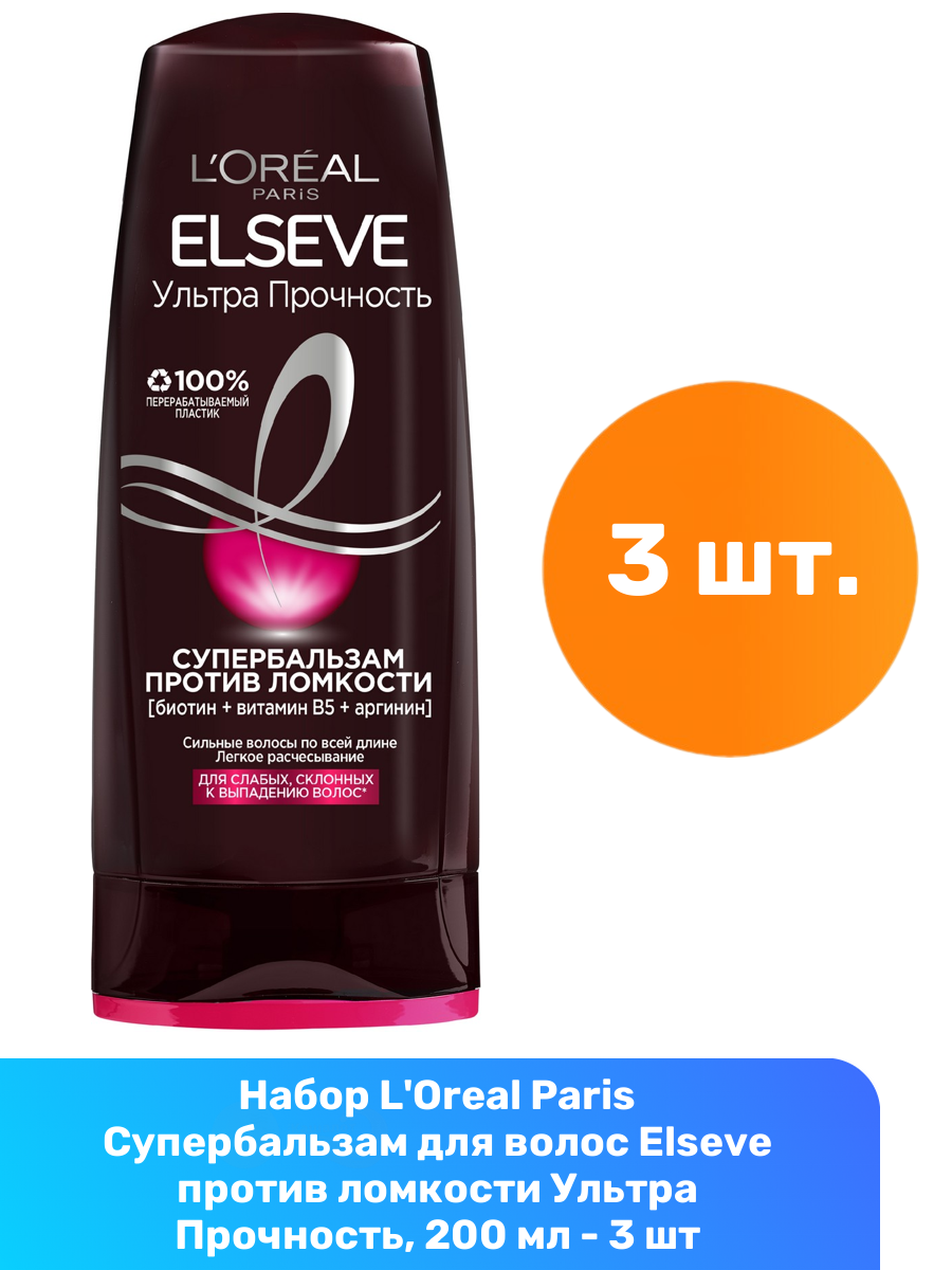 L'Oreal Paris Супербальзам для волос Elseve против ломкости Ультра Прочность, 200 мл - 3 шт