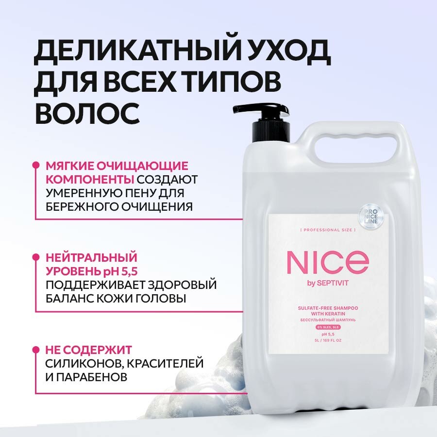 Купить Шампунь профессиональный NICE by Septivit бессульфатный Pro Line 5 л, с дозатором