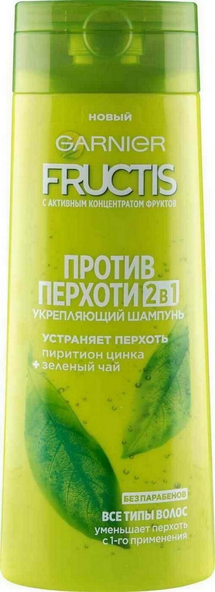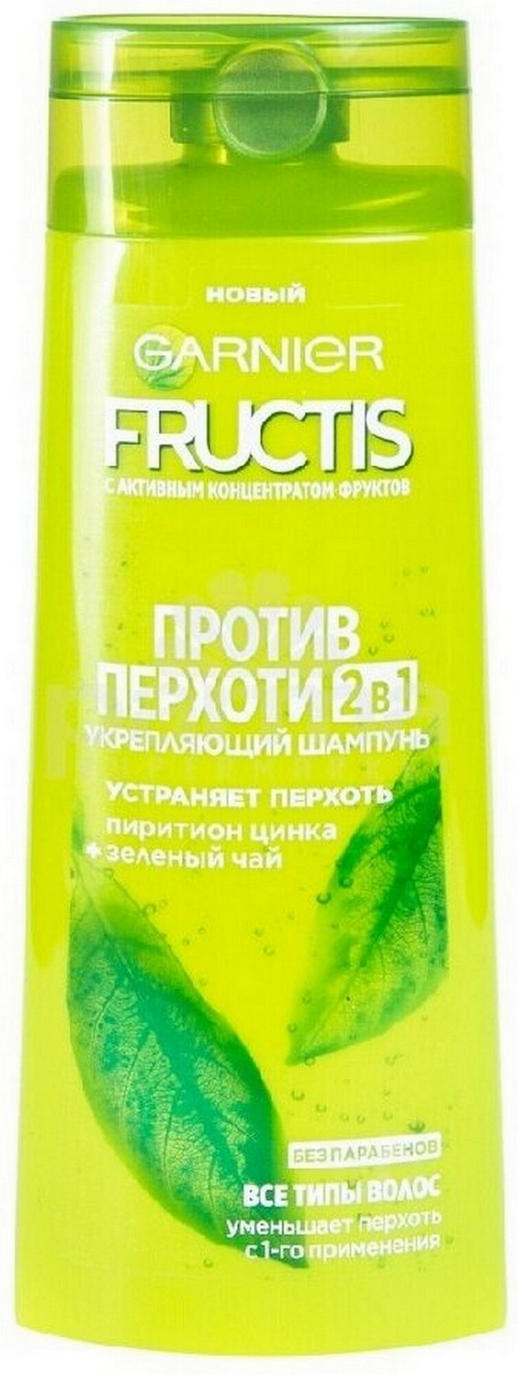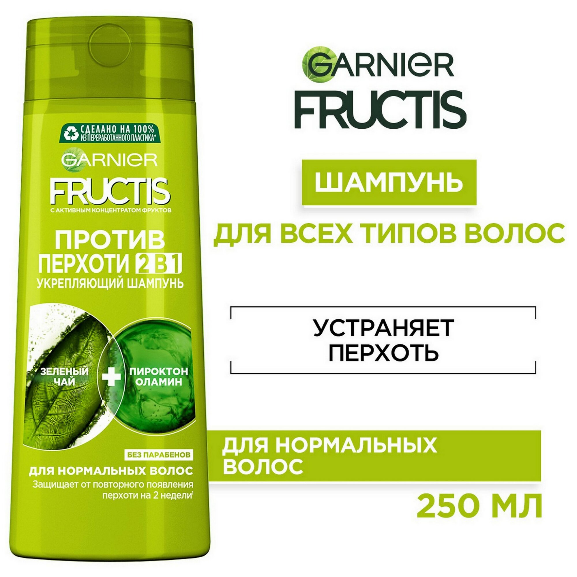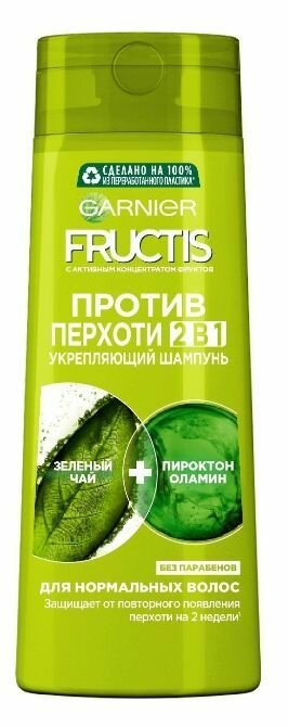 Garnier Fructis Шампунь для волос "Фруктис, Против перхоти 2в1", для всех типов волос, 250 мл с зеленым чаем и пироктон оламином
