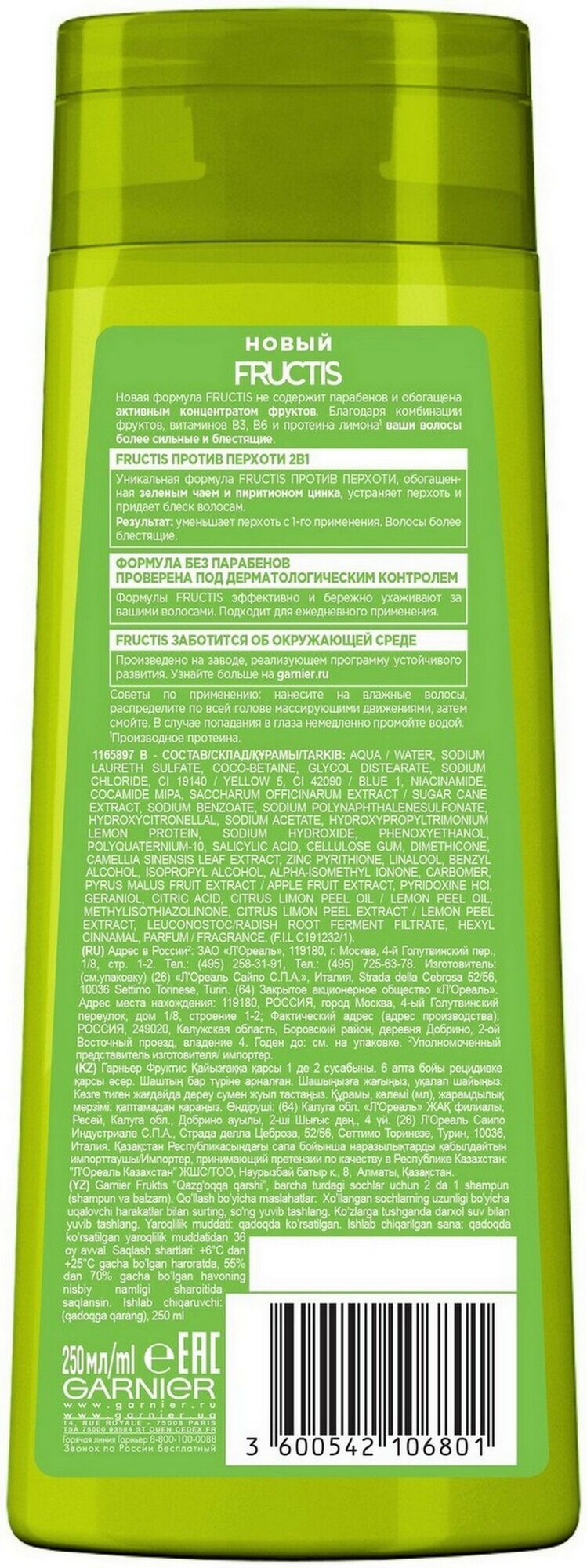 Garnier Fructis Шампунь Против Перхоти 2в1 250мл,2 шт интересное: