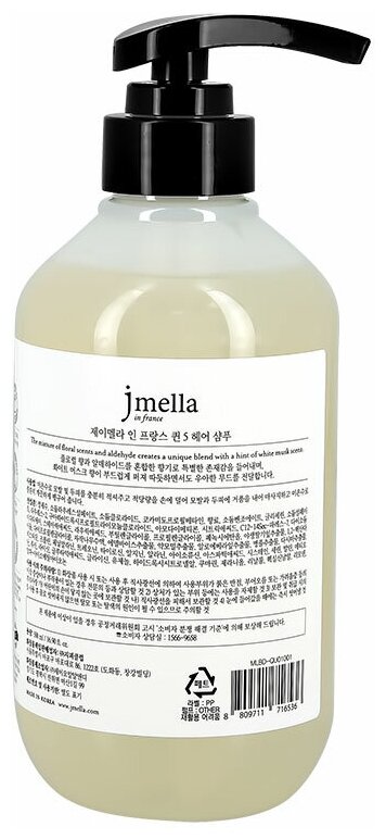 Шампунь для волос JMELLA IN FRANCE QUEEN 5' мужской / женский, укрепляющий, Альдегид, жасмин, белый мускус, Корея, 500 мл.