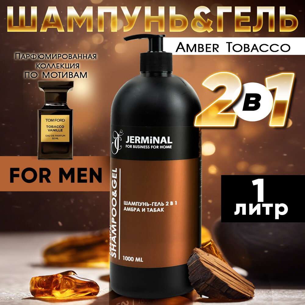 Мужской шампунь-гель 2 в 1JERMiNAL-COSMETiCS Амбра и табак 2в1, 1 литр
