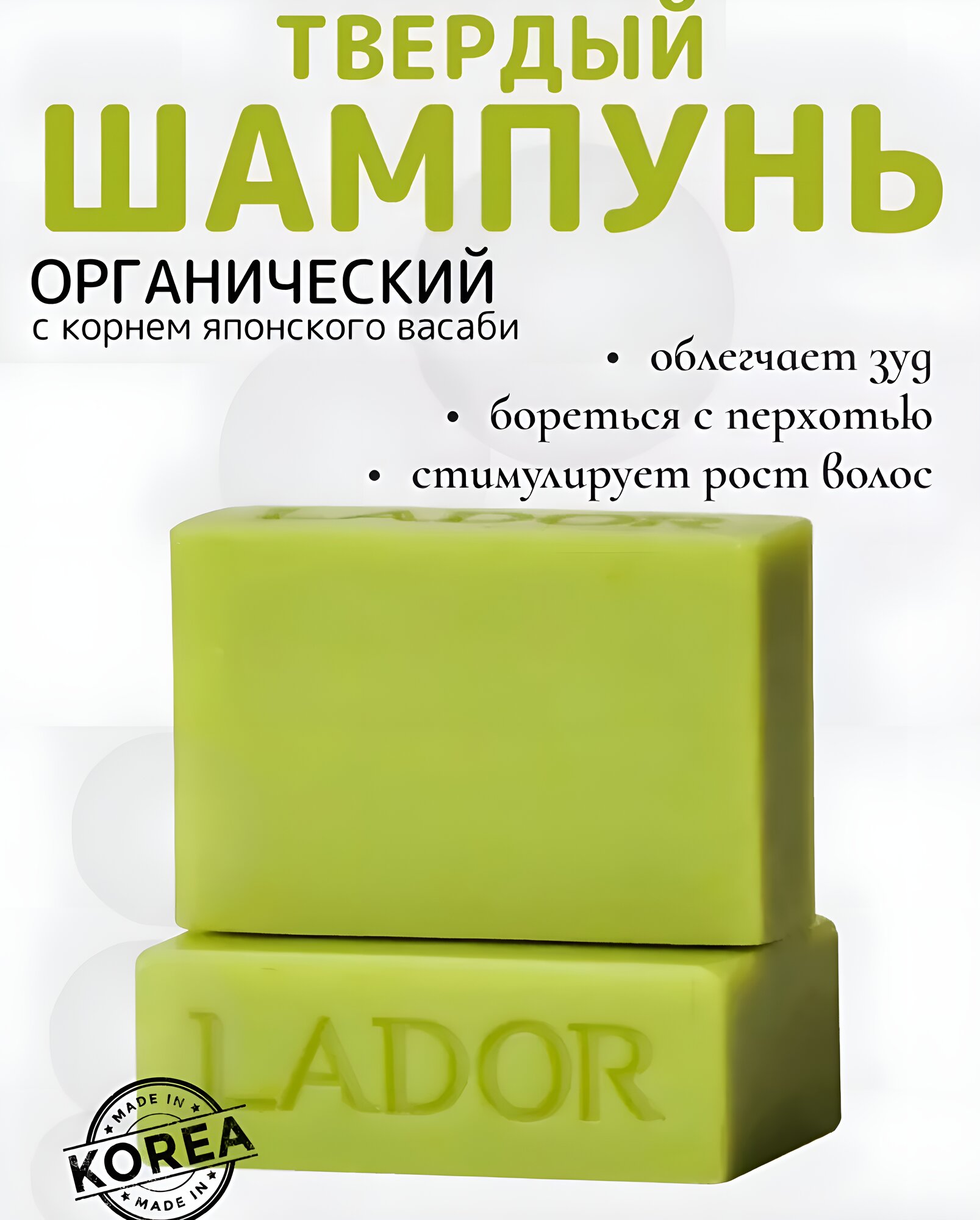 Купить Твердый шампунь с экстрактом корня васаби Lador Wasabi Shampoo Bar, 115 г / Корейский шампунь