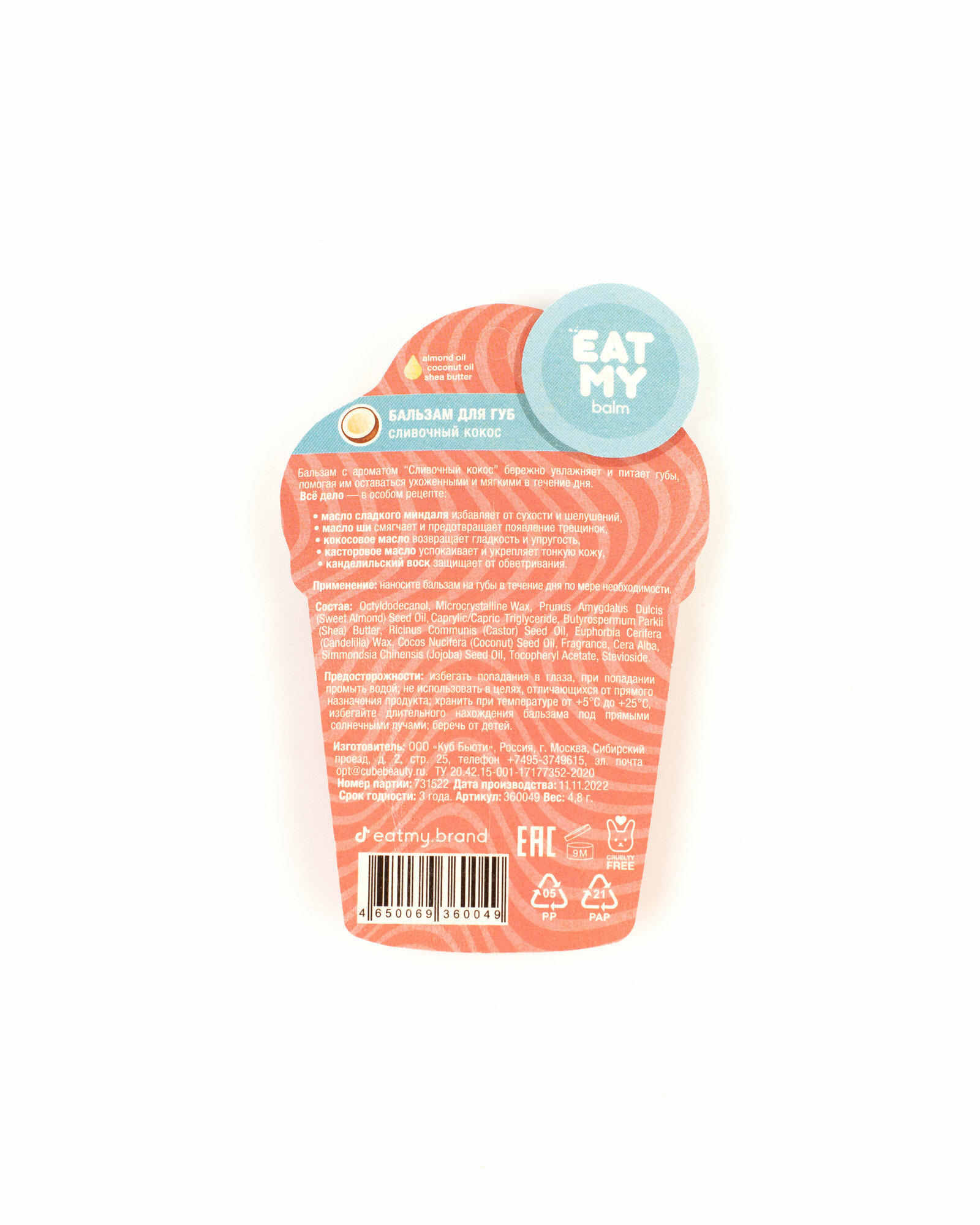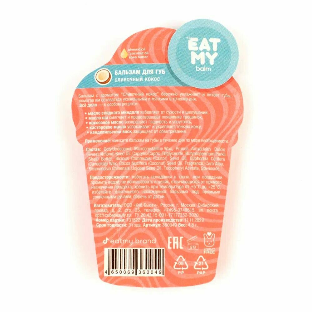Eat My Бальзам для губ "Сливочный кокос" интересное: