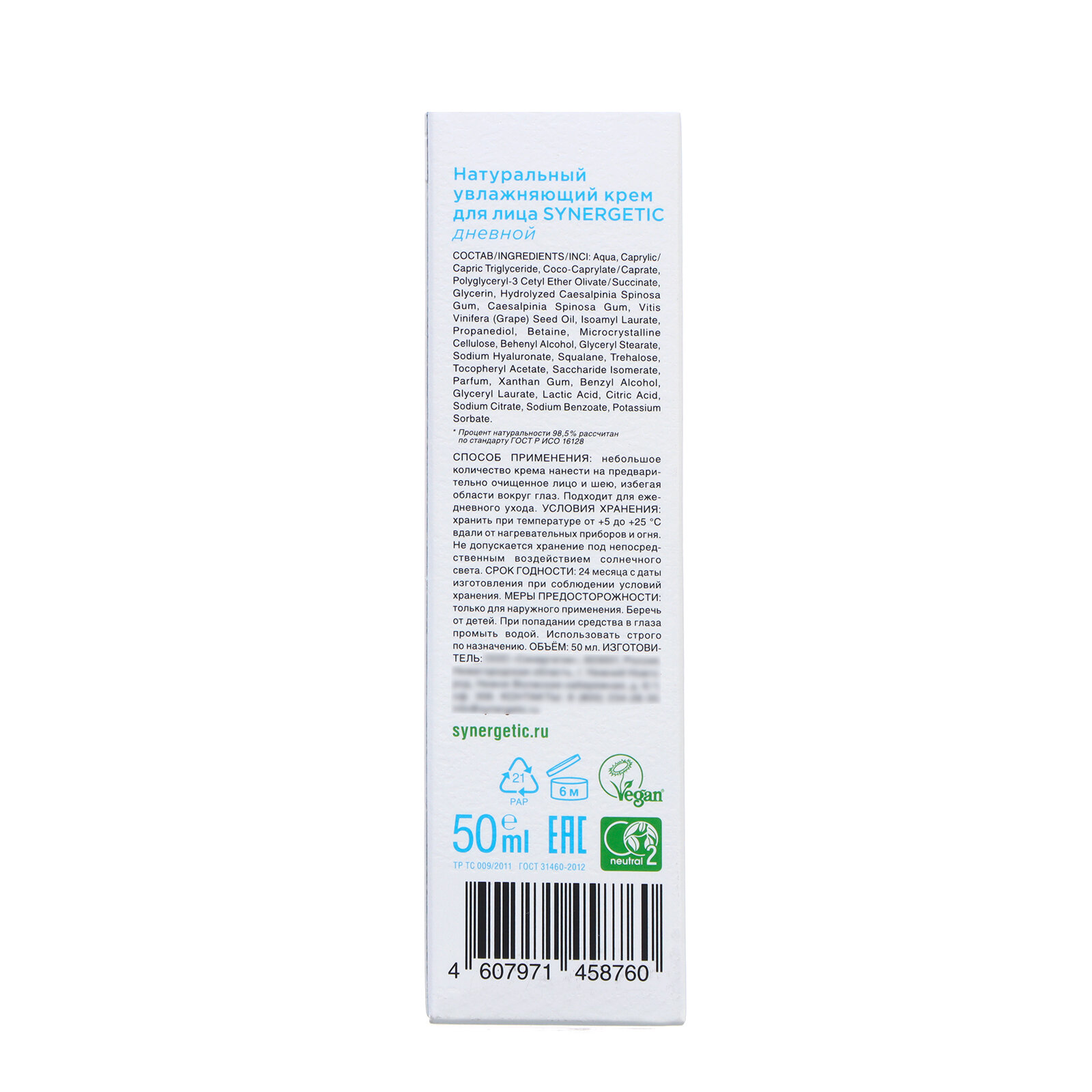 Крем для лица SYNERGETIC увлажняющий дневной 50мл