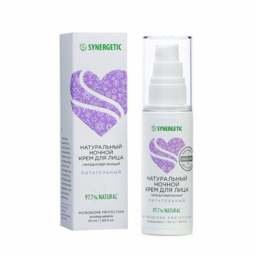 СохранитьГипоаллергенный крем для лица Synergetic Ночной, питательный 50мл интересное: