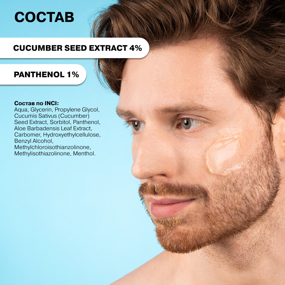 | Состав | Aqua, Glycerin, Propylene Glycol, Cucumis Sativus (Cucumber) Seed Extract, Sorbitol, Panthenol, Aloe Barbadensis Leaf Extract, Carbomer, Hydroxyethylcellulose, Benzyl Alcohol, Methylchloroisothianzolinone, Methylisothiazolinone, Menthol |