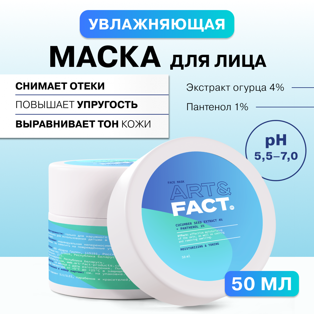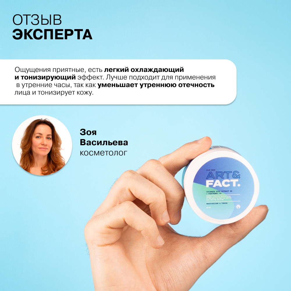 ART&FACT. / Увлажняющая огуречная маска от отеков с охлаждающим эффектом с экстрактом огурца 4% и пантенолом 1%, 50 мл