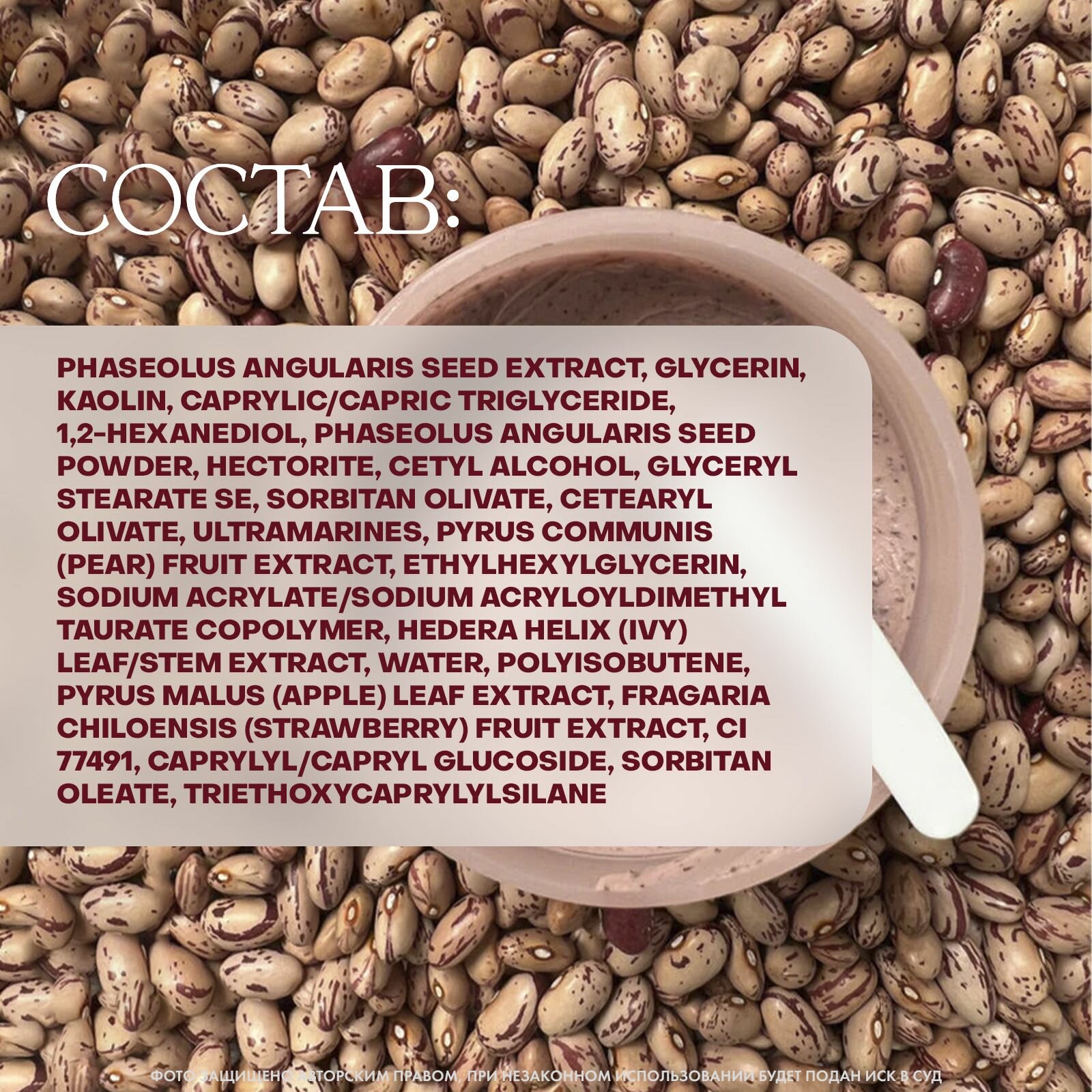 | Состав | Phaseolus angularis seed extract(Haenam red bean extract 30%), glycerin, kaolin, caprylic/capric triglyceride, 1,2-hexanediol, phaseolus angularis seed powder, hectorite, cetyl alcohol, glyceryl stearate se, sorbitan olivate, cetearyl olivate, ultramarines, pyrus communis (pear) fruit extract, ethylhexylglycerin, sodium acrylate/sodium acryloyldimethyl taurate copolymer, hedera helix (ivy) leaf/stem extract, water, polyisobutene, pyrus malus (apple) leaf extract, fragaria chiloensis (strawberry) fruit extract, ci 77491, caprylyl/capryl glucoside, sorbitan oleate, triethoxycaprylylsilane |