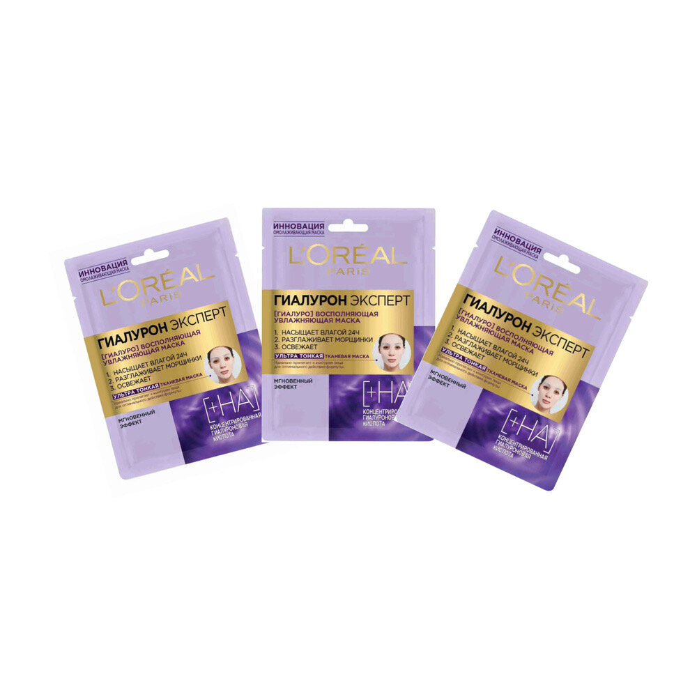 Набор из 3 штук Маска для лица L'OREAL Гиалурон Эксперт тканевая маска