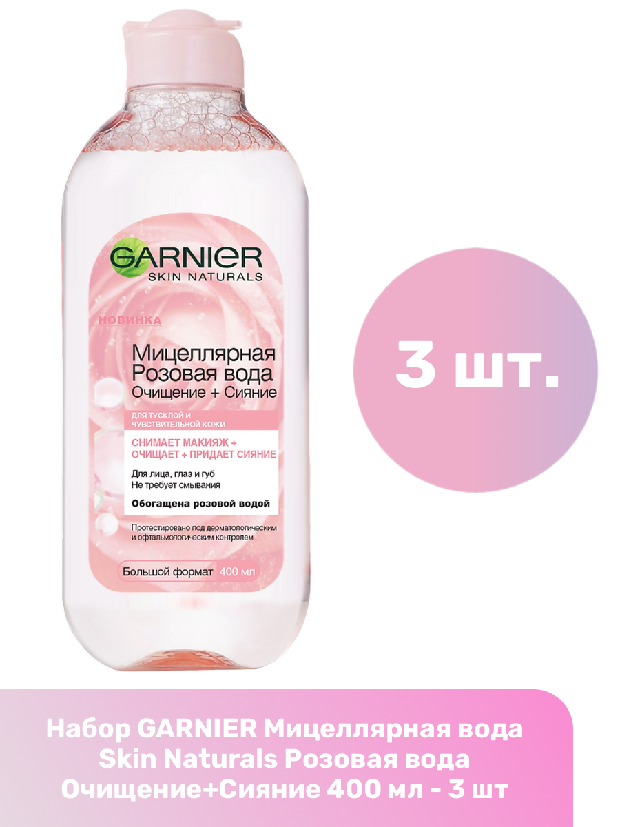 Купить Набор из 3 штук Garnier Экспертное очищение Мицеллярная Розовая Вода Очищение + Сияние 400 мл