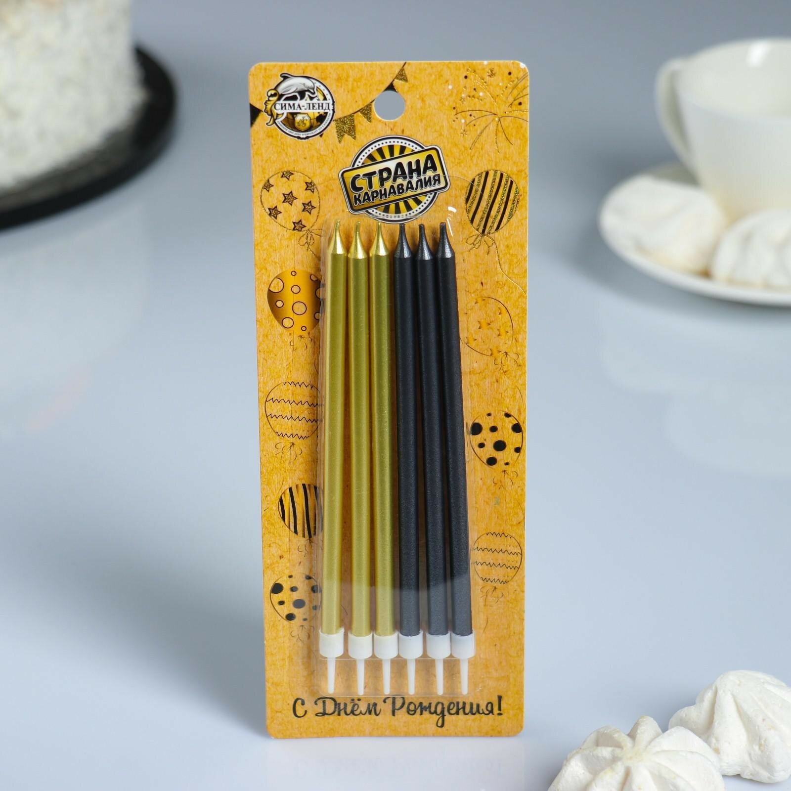 Свечи в торт "Ройс", 6 шт, высокие, 13 см, чёрные и золотые 4710824