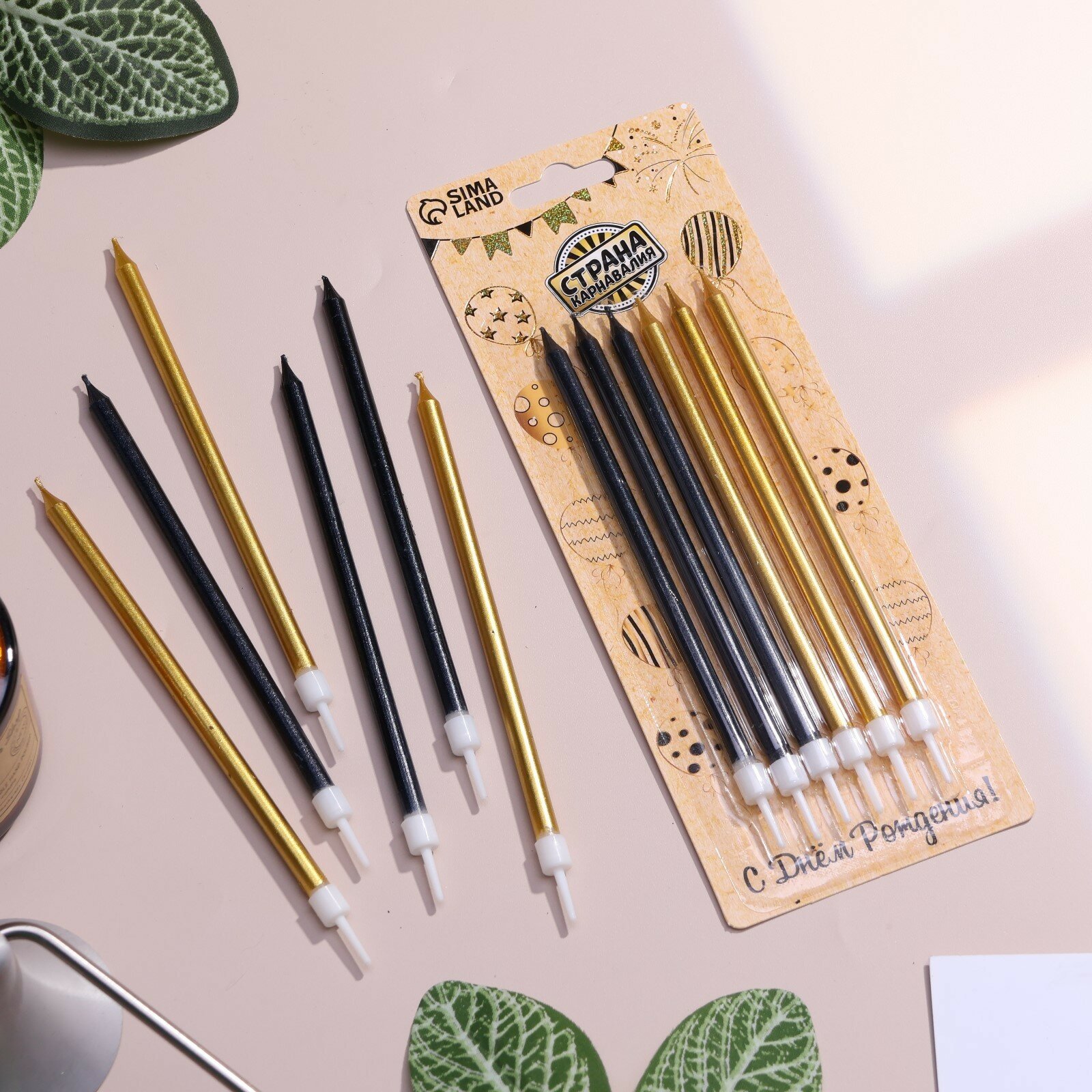 Купить Свечи в торт Ройс, 6 шт, высокие, 13 см, чёрные и золотые