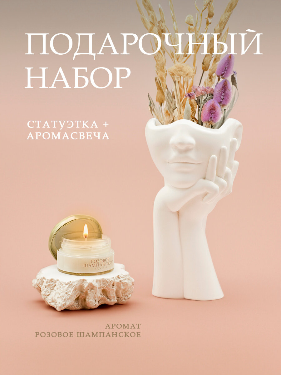 Купить Подарочный набор статуэтка для интерьера Девушка Милота и свеча Розовое шампанское