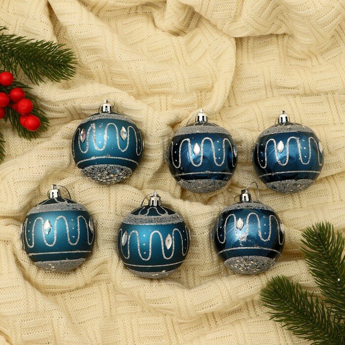 Набор шаров пластик d-6 см, 6 шт "Винтажный глянец" синий