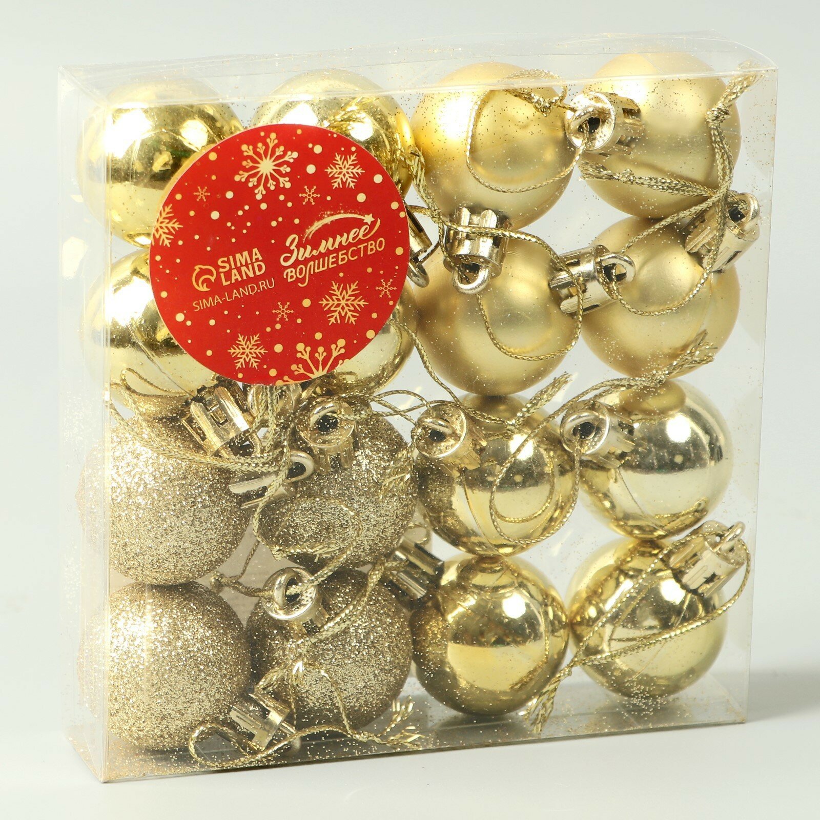 Ёлочные шары Зимнее волшебство - Глянец, цвет золотой, пластик, 3 см, 3 набора по 6 шт