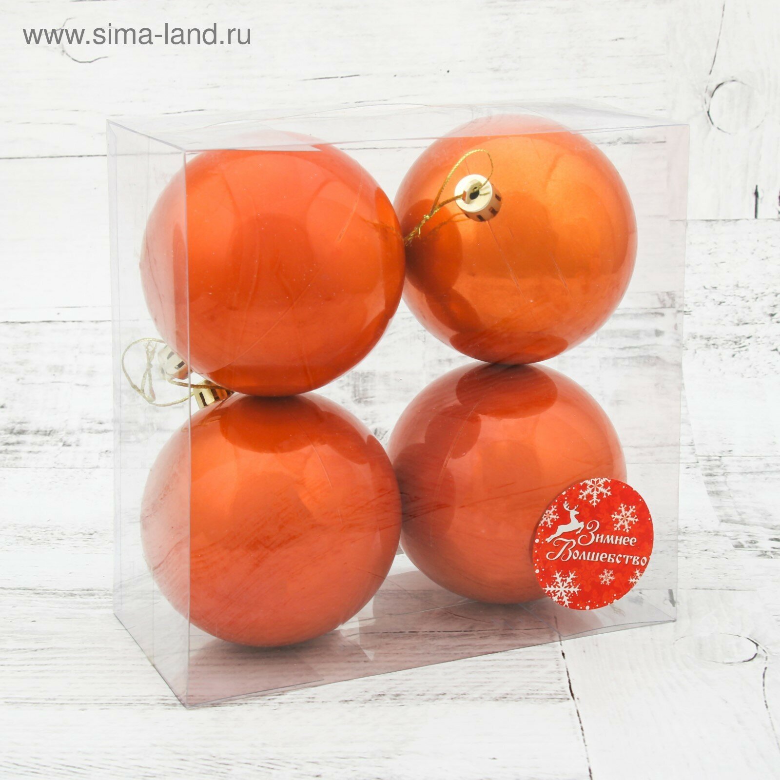 Купить Набор шаров пластик d-8 см, 4 шт "Глянец" оранжевый