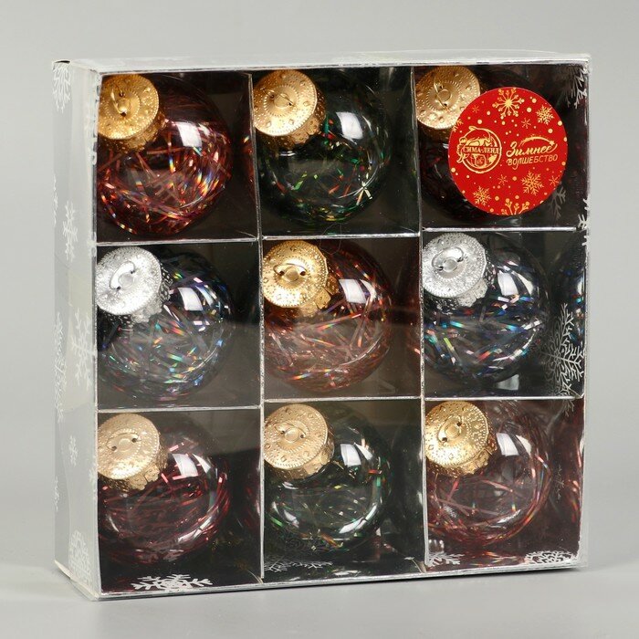 Набор шаров пластик d-6 см, 9 шт "Мелодия" веточки диско, си
