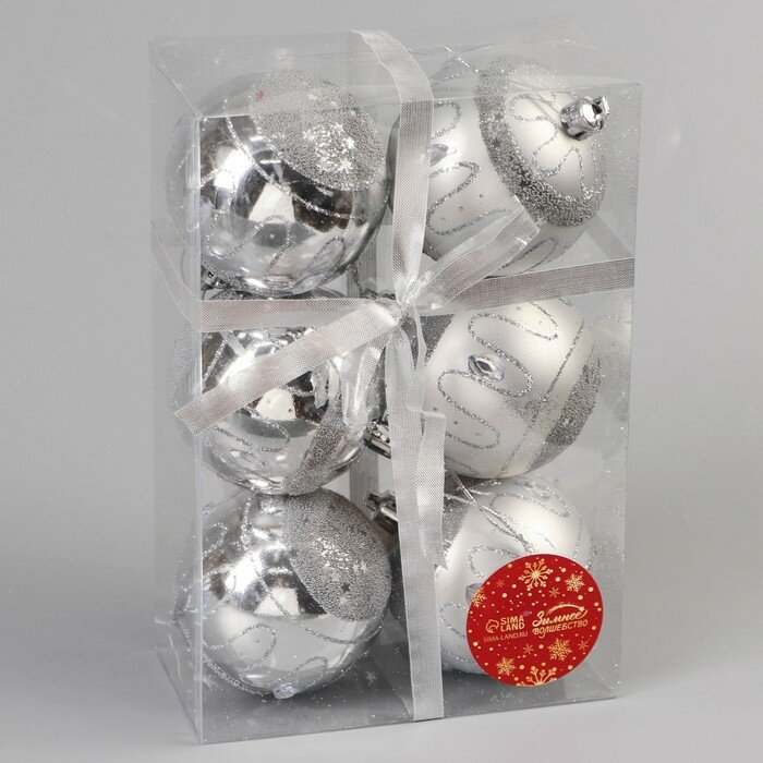 Набор шаров пластик d-6 см, 6 шт "Дончо" серебро прозрачный