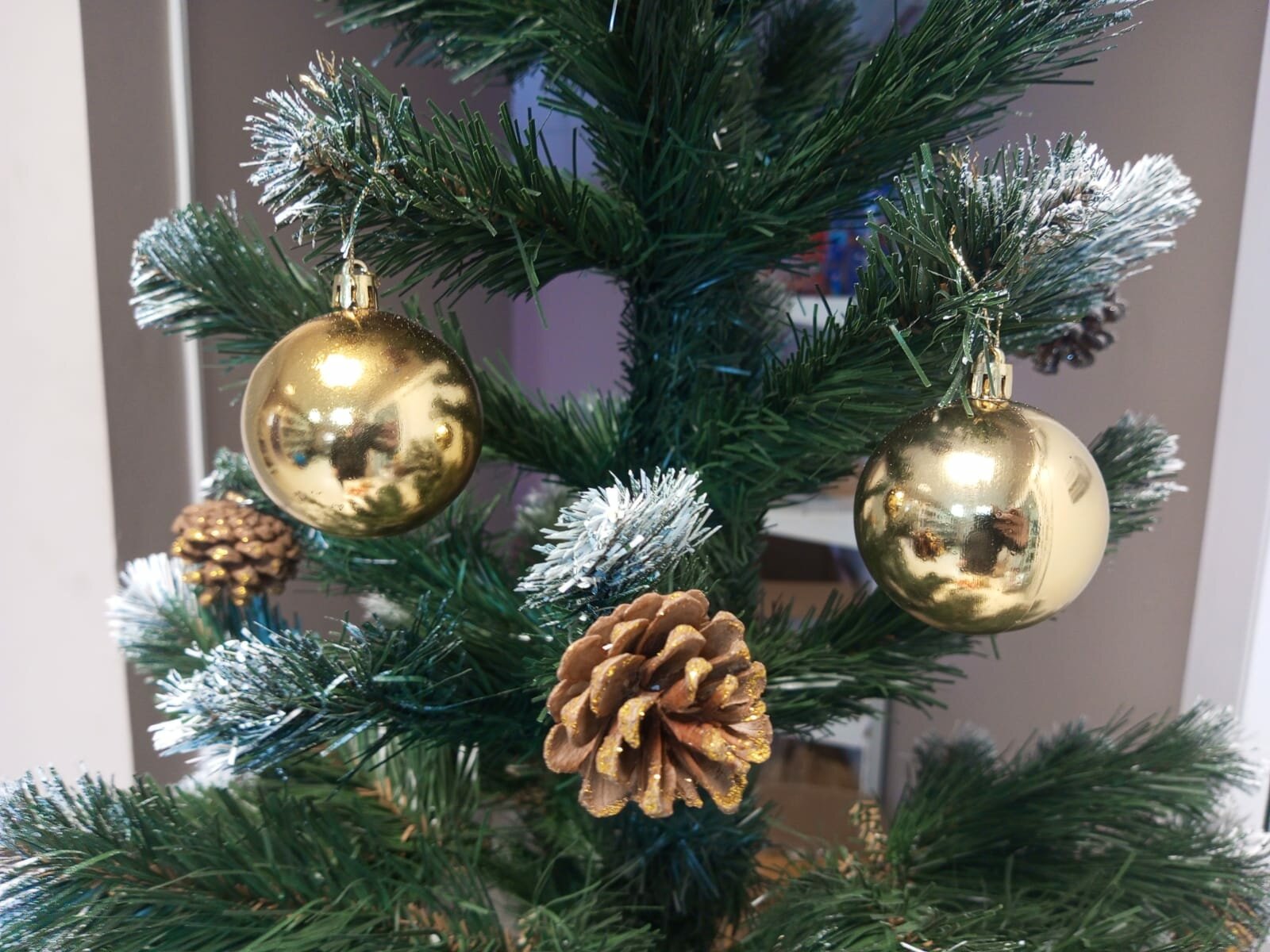 Набор ёлочных шаров пластик d-4 см, 12 шт "Новогодние ветви" золото