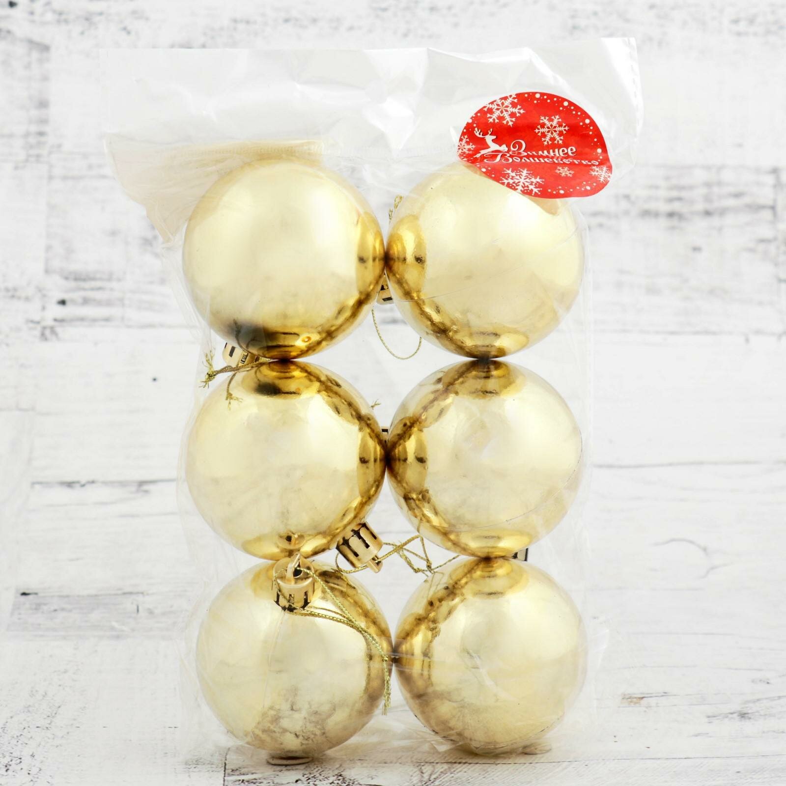 Ёлочные игрушки, шары новогодние , пластик, набор d-6 см, 6 шт "Глянец" золото