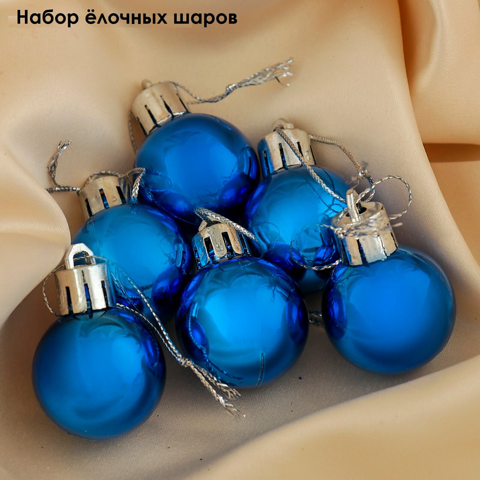 Ёлочные игрушки, шары новогодние, пластик, набор d-3 см, 6 шт "Глянец" синий, 4 шт.