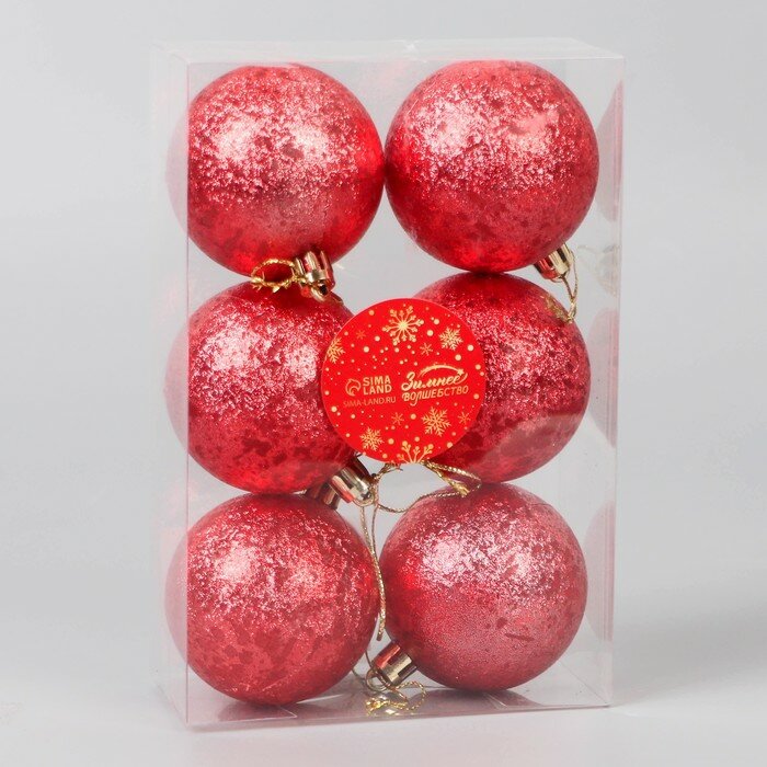 Купить Ёлочные игрушки, шары новогодние , пластик, набор d-6 см, 6 шт "Ретро" красный